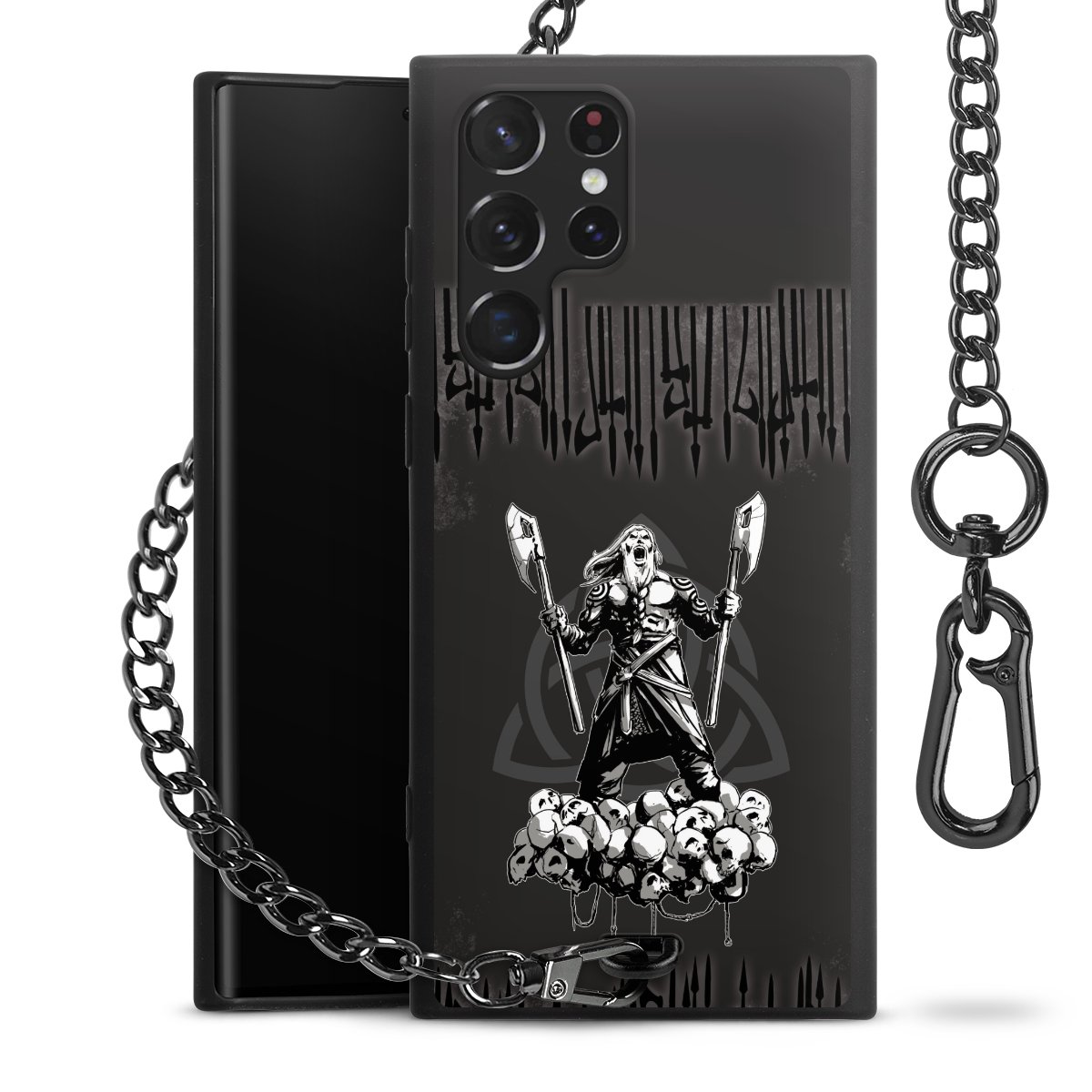 • Mattschwarze Handyhülle mit Metallkette