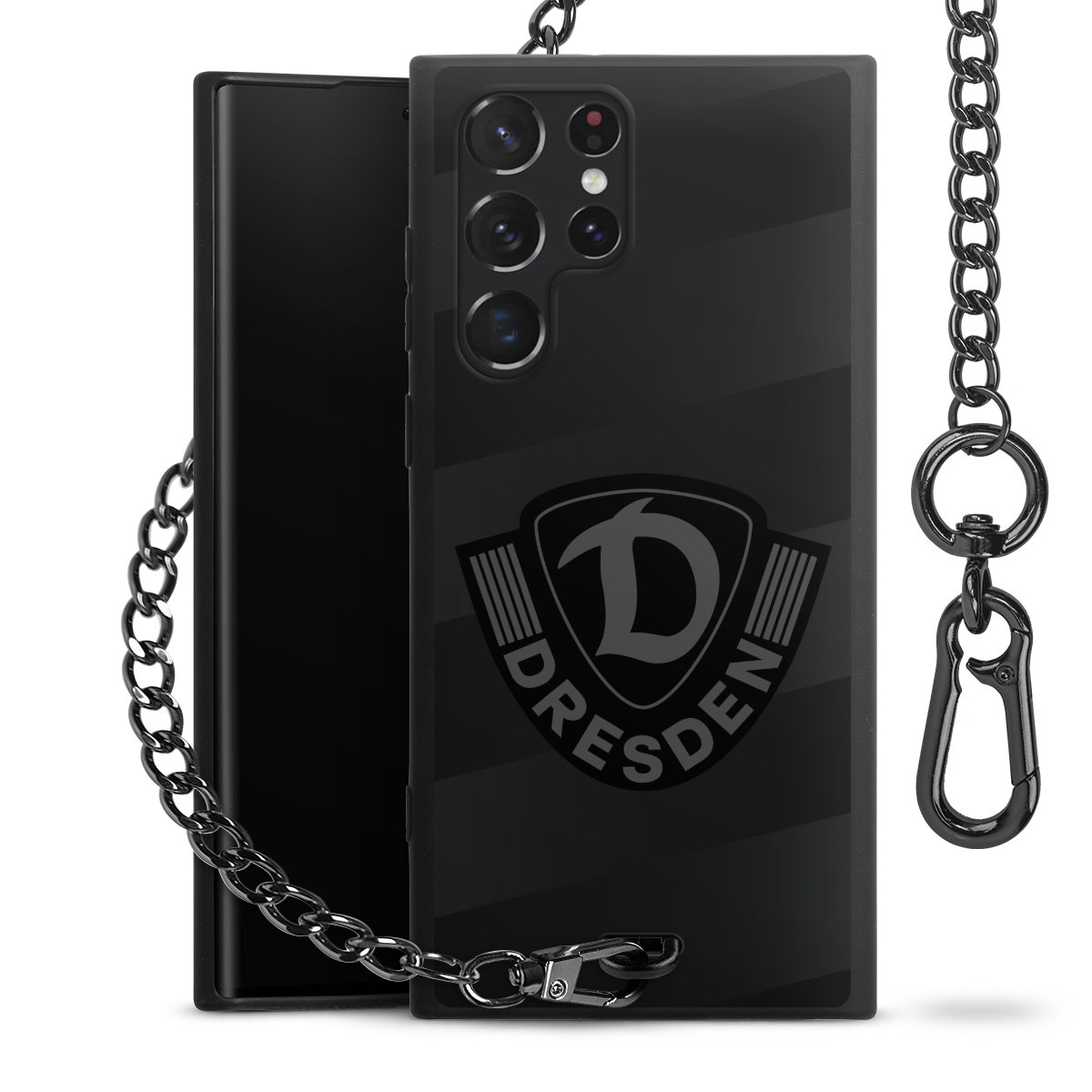 • Mattschwarze Handyhülle mit Metallkette