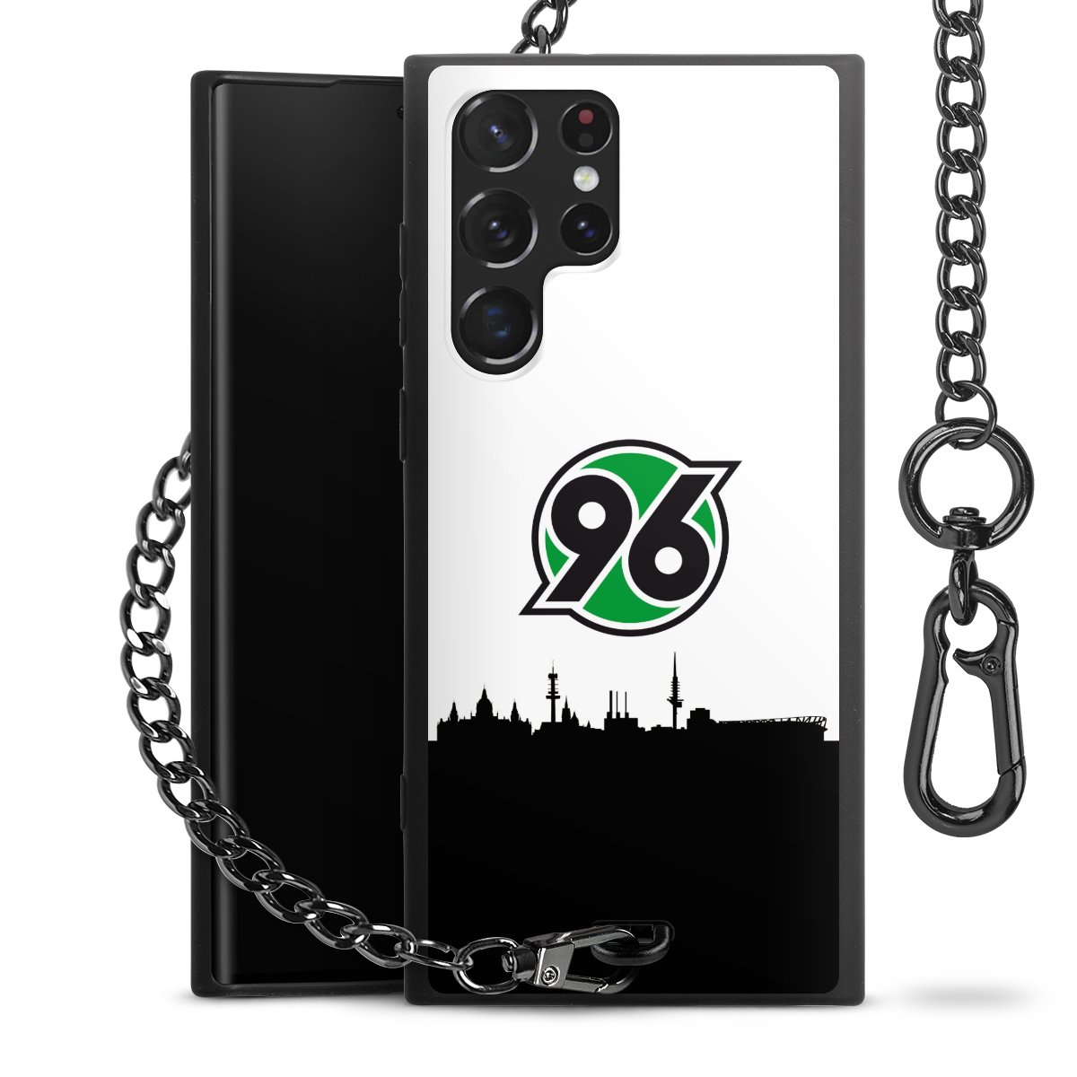 Die mattschwarze Silikon-Handyhülle besteht aus robustem TPU (thermoplastisches Polyurethan). Sie ist flexibel und schützt Dein Smartphone vor Stößen und Kratzern. Die Kette sowie der Karabinerhaken sind aus Metall in Gunmetal-Optik gefertigt. Für dieses Produkt kommen ausschließlich TÜV-geprüfte Materialien zum Einsatz.