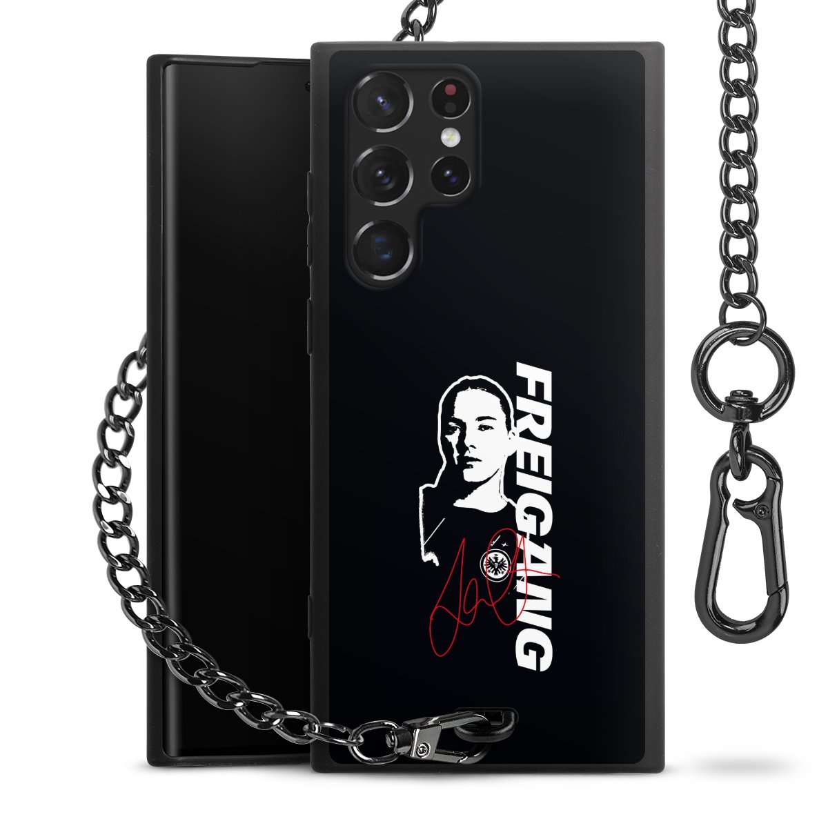 • Mattschwarze Handyhülle mit Metallkette