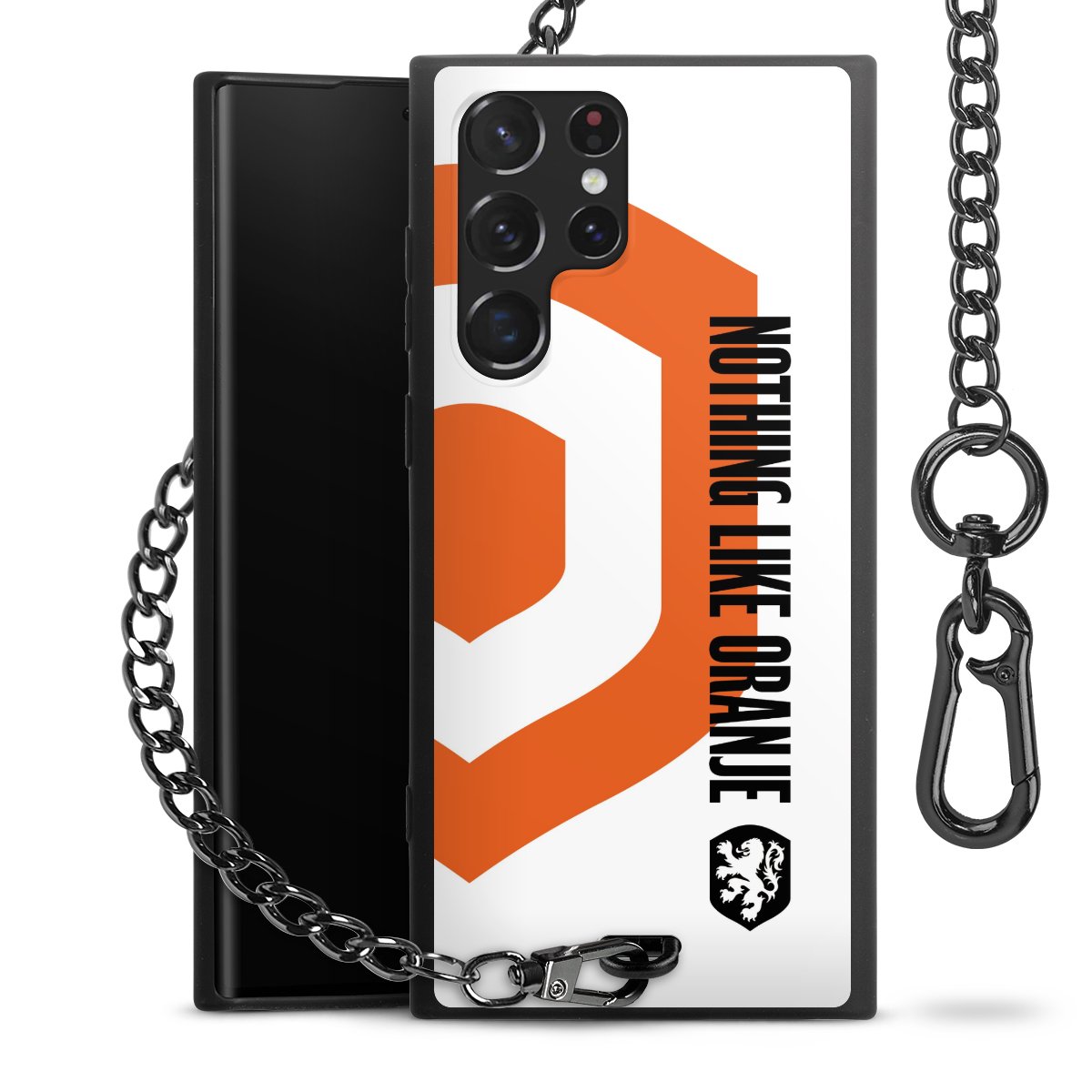 - Mattschwarze Handyhülle mit Metallkette