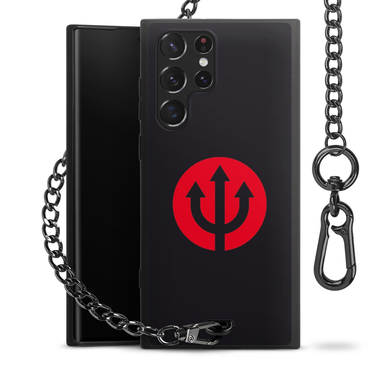 - Mattschwarze Handyhülle mit Metallkette