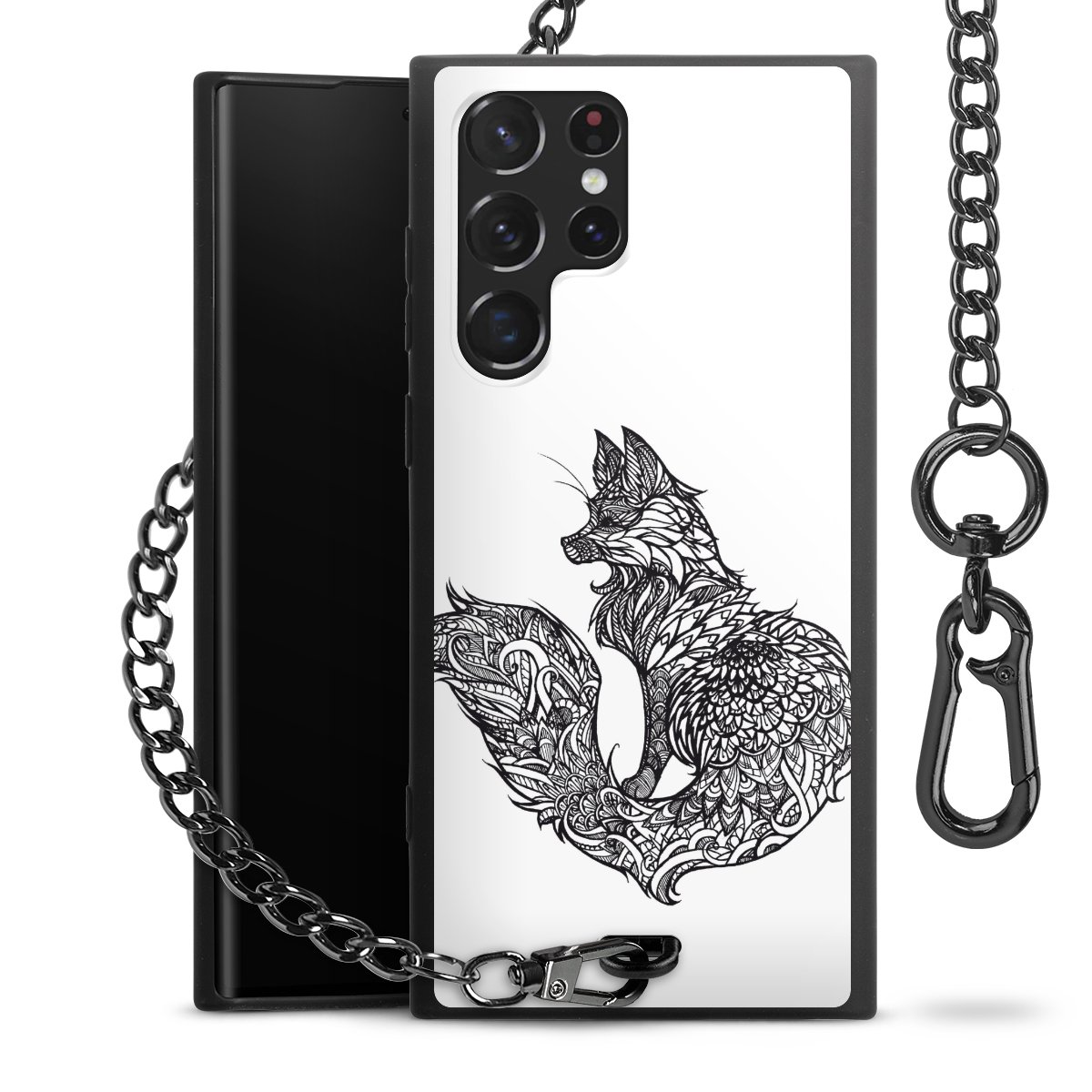 - Mattschwarze Handyhülle mit Metallkette