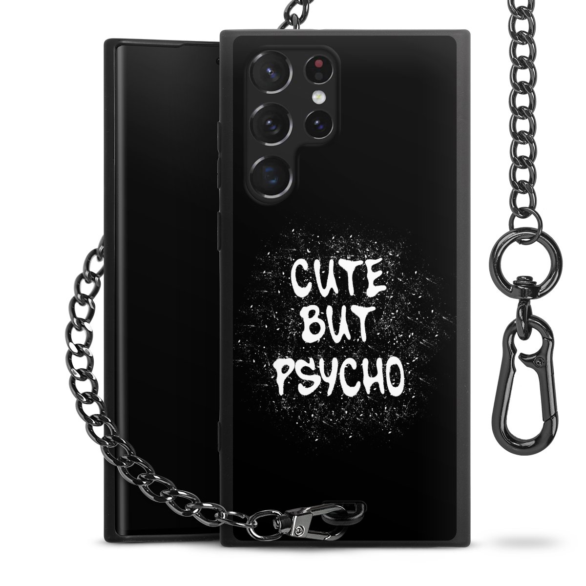 • Mattschwarze Handyhülle mit Metallkette