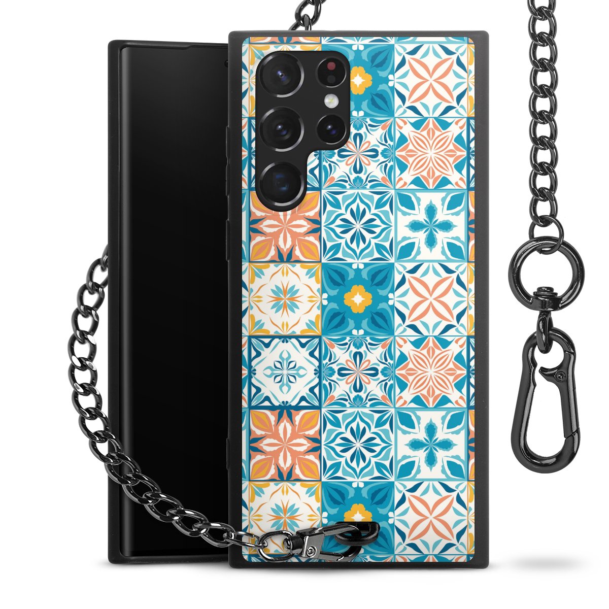 • Mattschwarze Handyhülle mit Metallkette