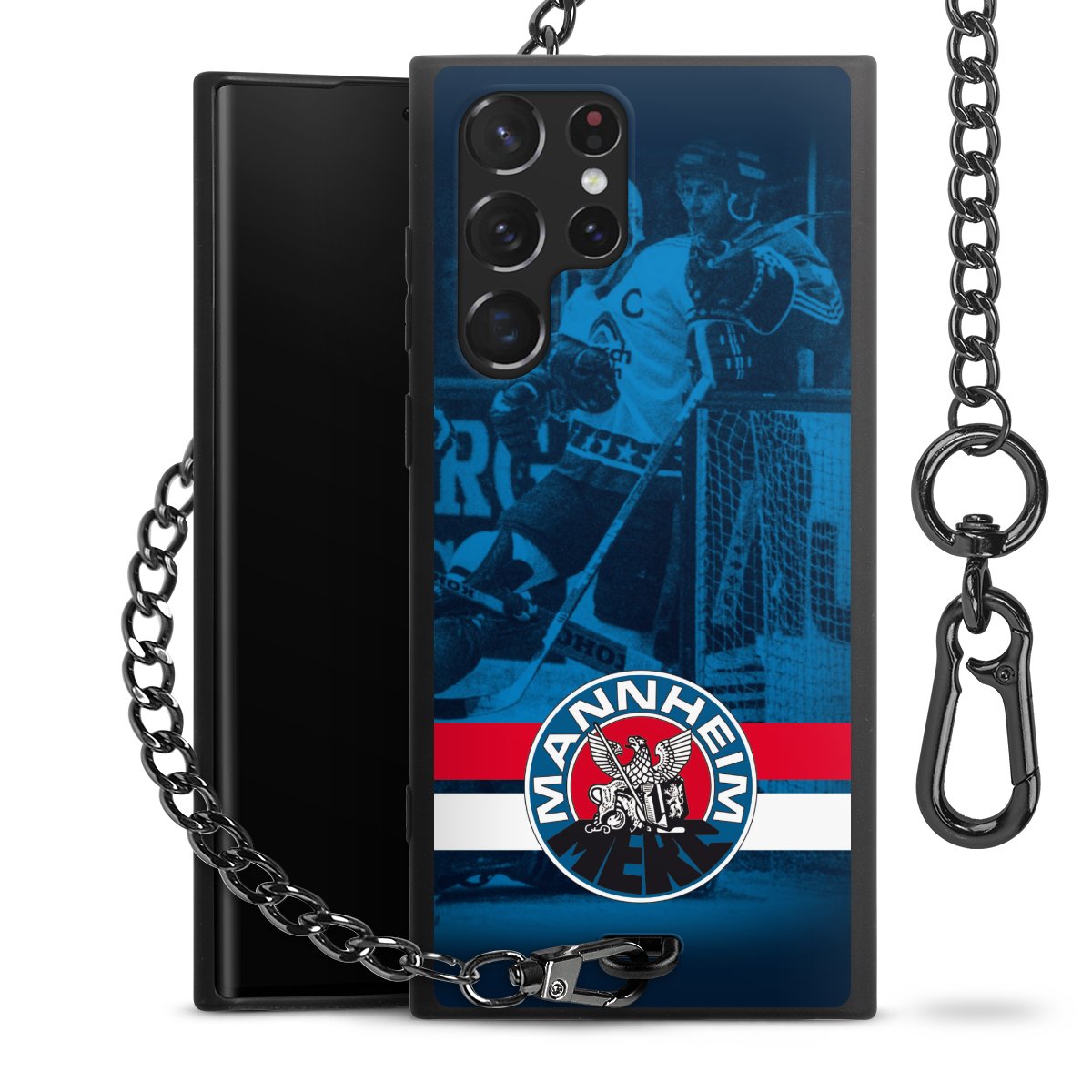 • Mattschwarze Handyhülle mit Metallkette