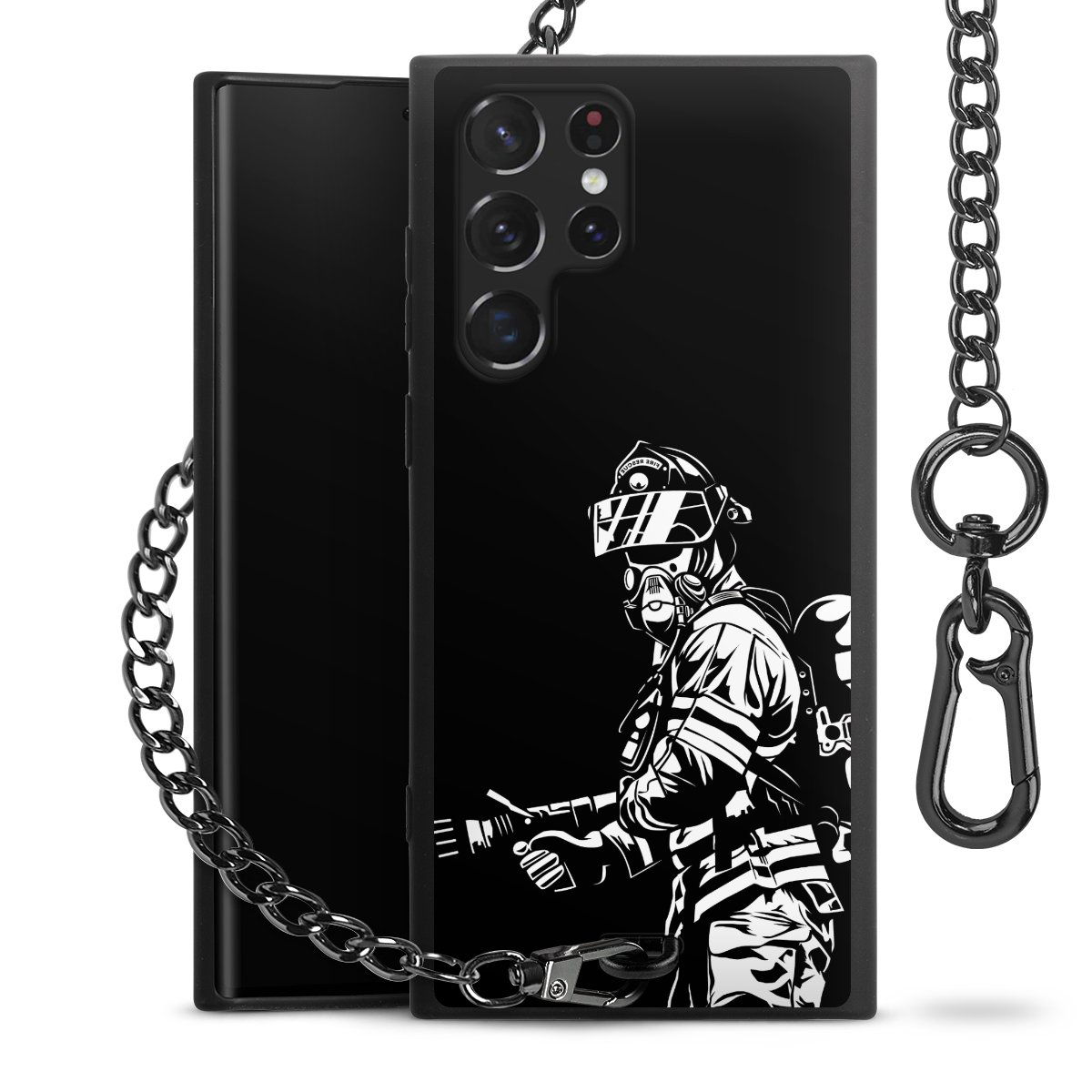 - Mattschwarze Handyhülle mit Metallkette