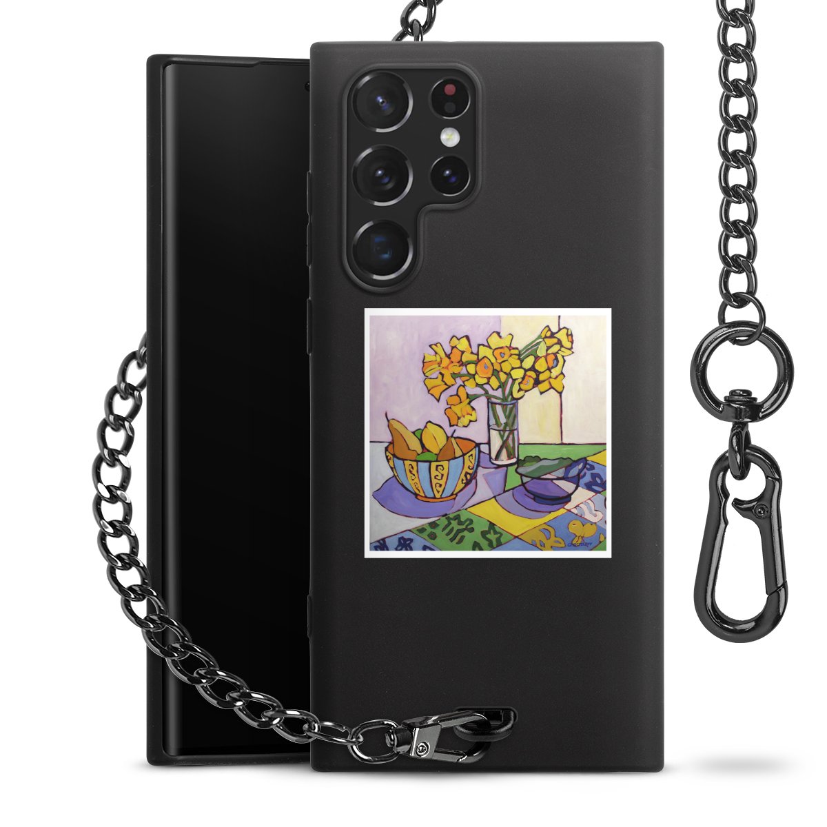 - Mattschwarze Handyhülle mit Metallkette