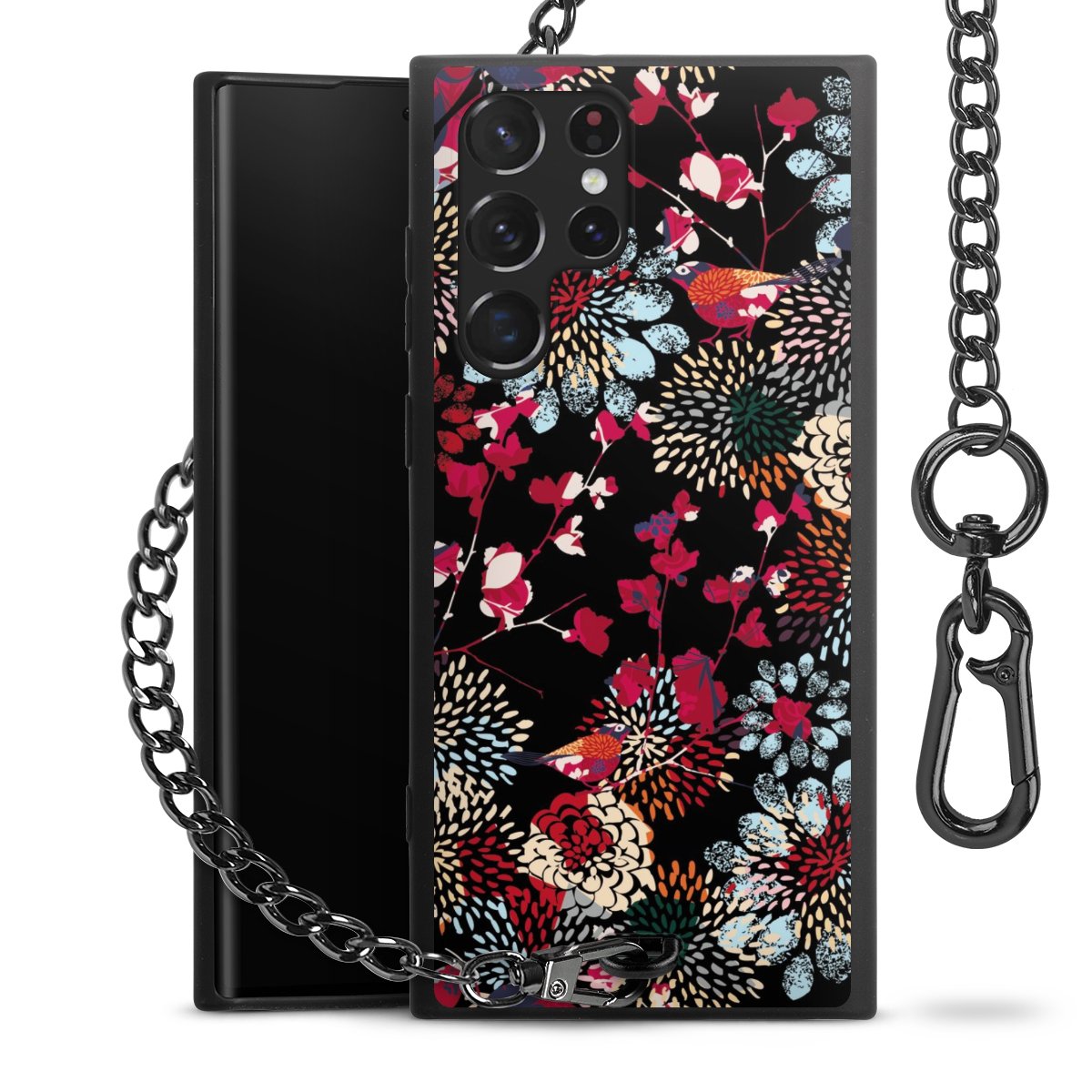 - Mattschwarze Handyhülle mit Metallkette