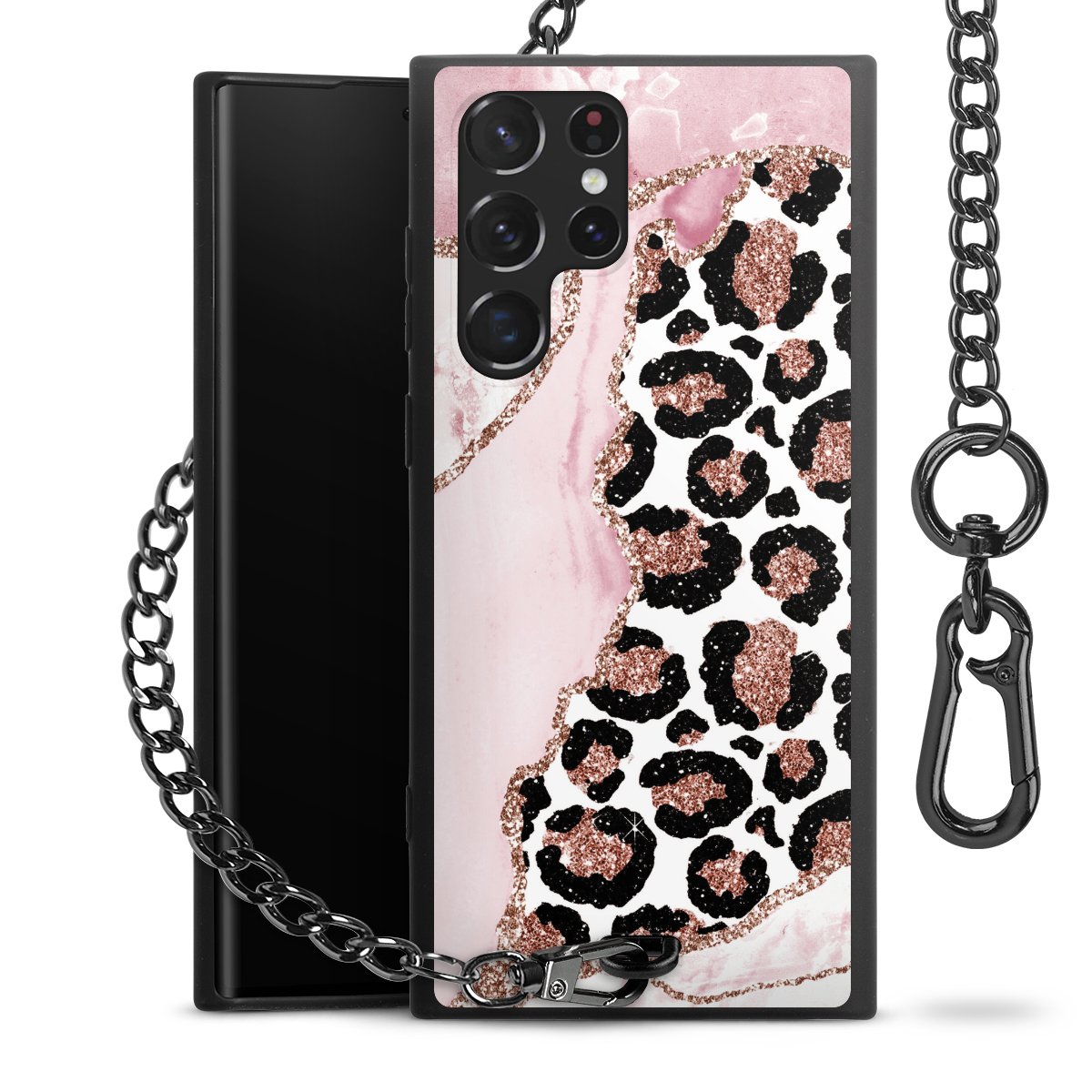 • Mattschwarze Handyhülle mit Metallkette