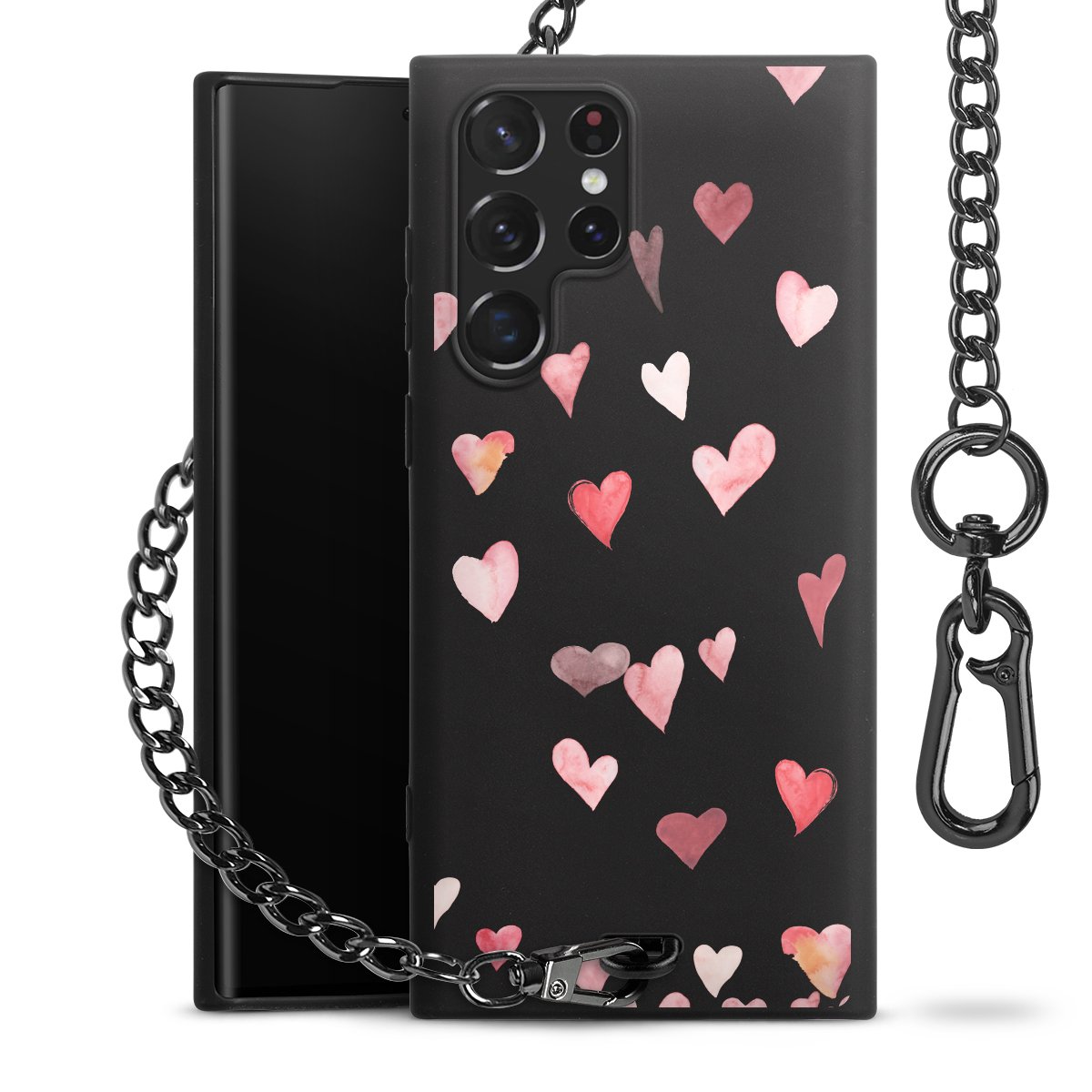 • Mattschwarze Handyhülle mit Metallkette
