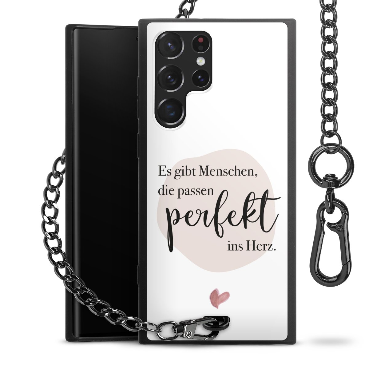 • Mattschwarze Handyhülle mit Metallkette
