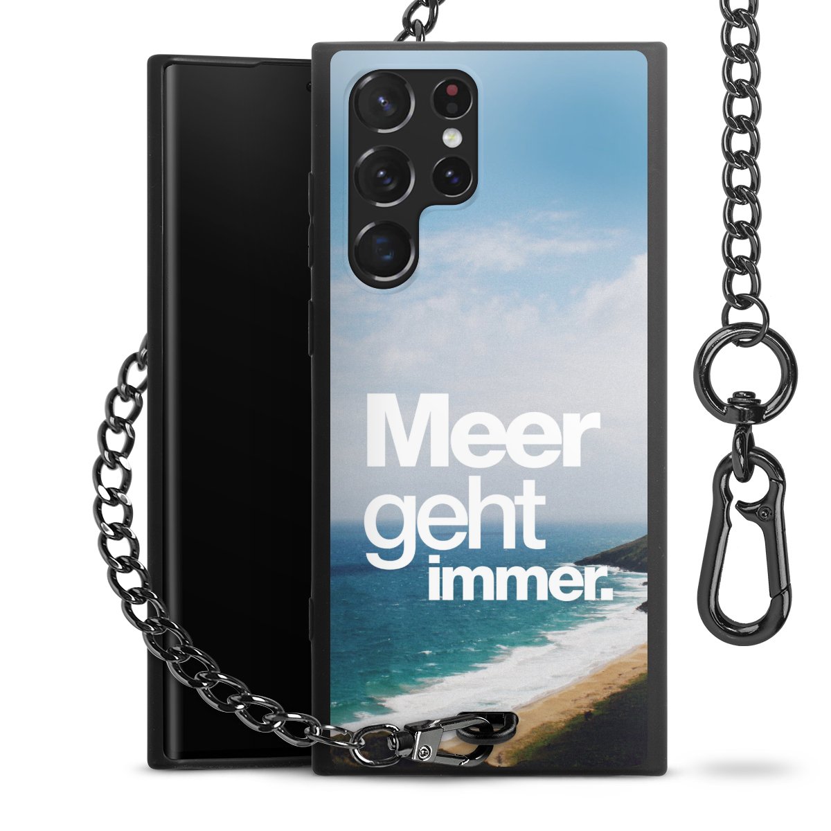 • Mattschwarze Handyhülle mit Metallkette