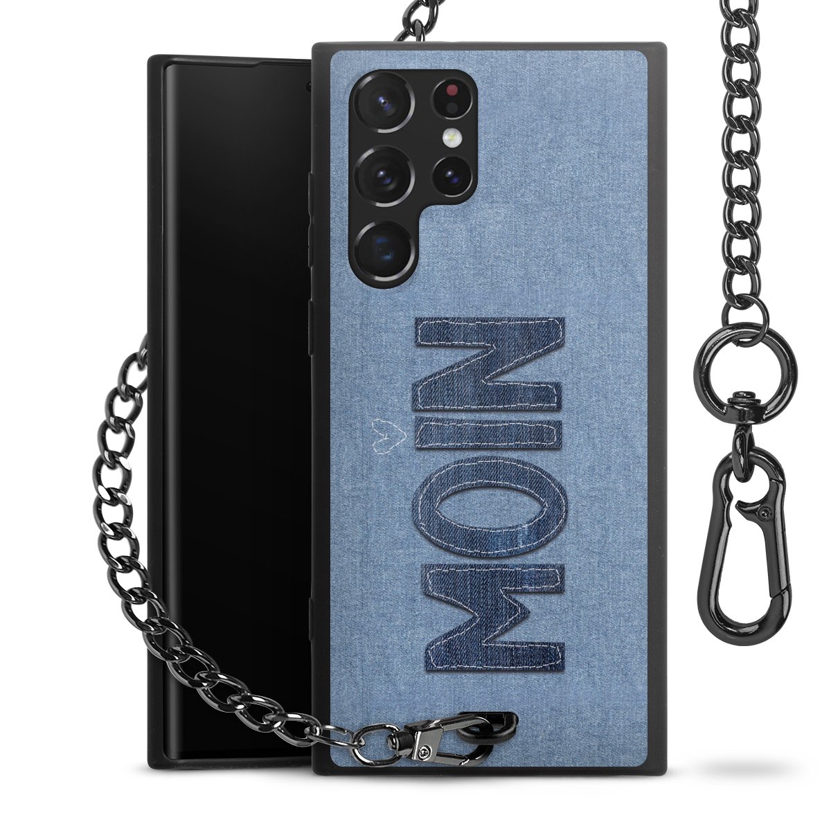 • Mattschwarze Handyhülle mit Metallkette