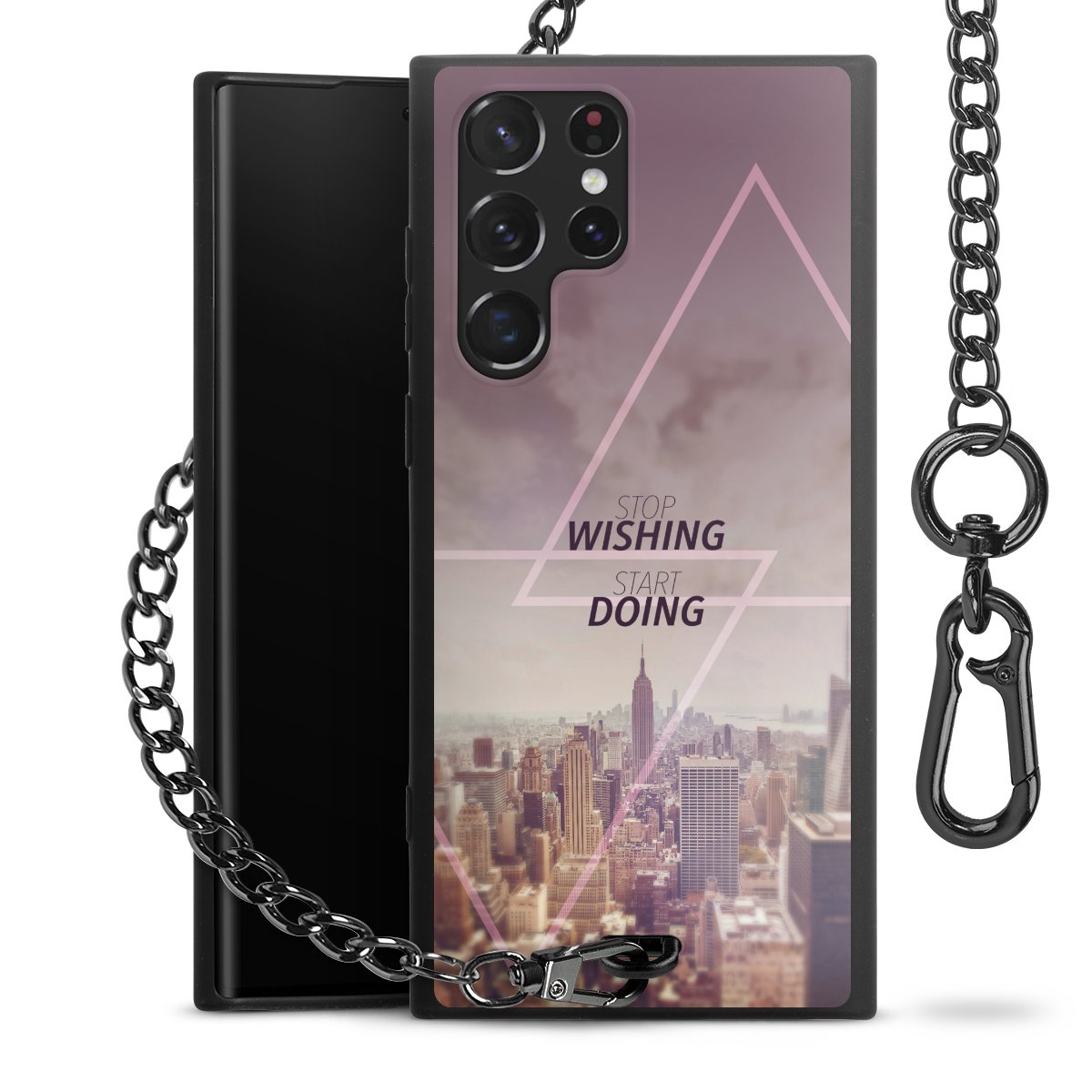 - Mattschwarze Handyhülle mit Metallkette