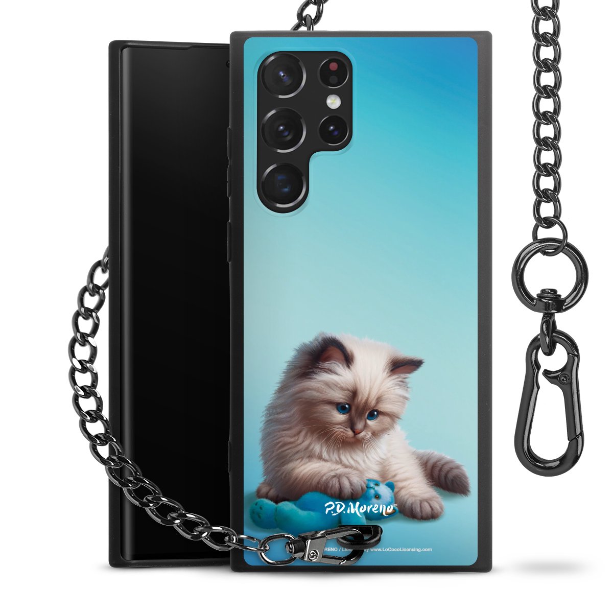 Die mattschwarze Silikon-Handyhülle besteht aus robustem TPU (thermoplastisches Polyurethan). Sie ist flexibel und schützt Dein Smartphone vor Stößen und Kratzern. Die Kette sowie der Karabinerhaken sind aus Metall in Gunmetal-Optik gefertigt. Für dieses Produkt kommen ausschließlich TÜV-geprüfte Materialien zum Einsatz.