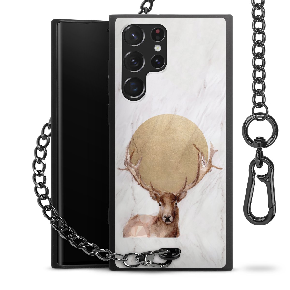• Mattschwarze Handyhülle mit Metallkette