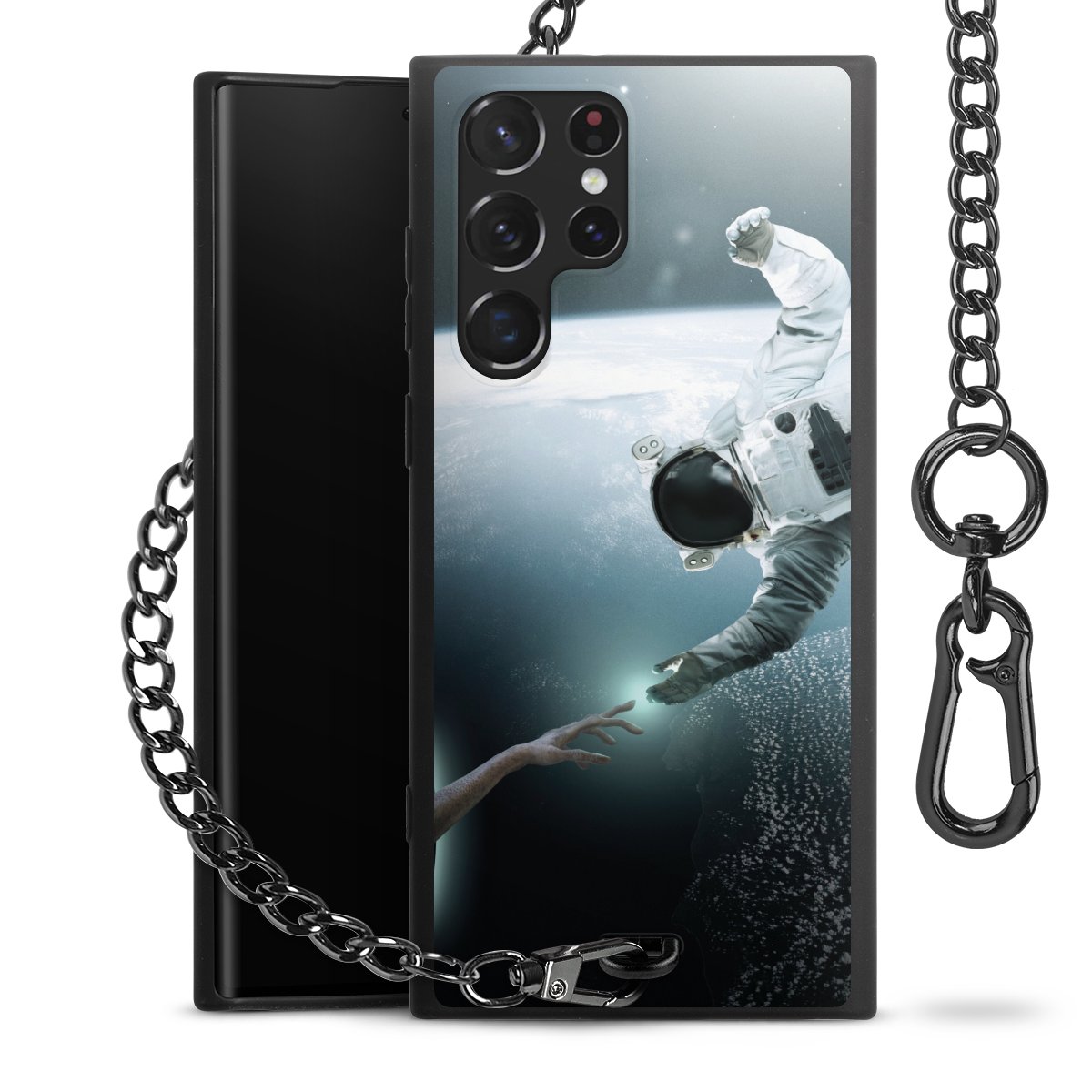 - Mattschwarze Handyhülle mit Metallkette