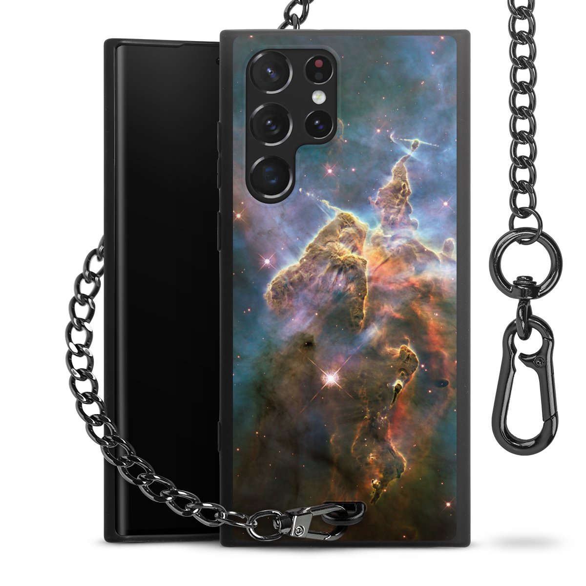 - Mattschwarze Handyhülle mit Metallkette