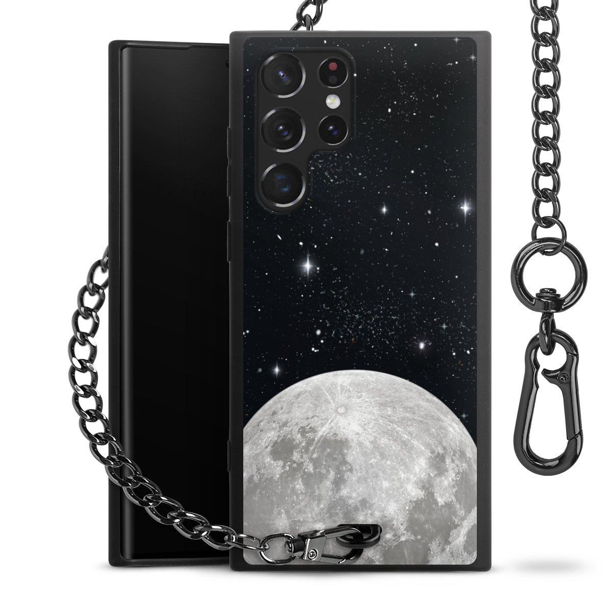 • Mattschwarze Handyhülle mit Metallkette