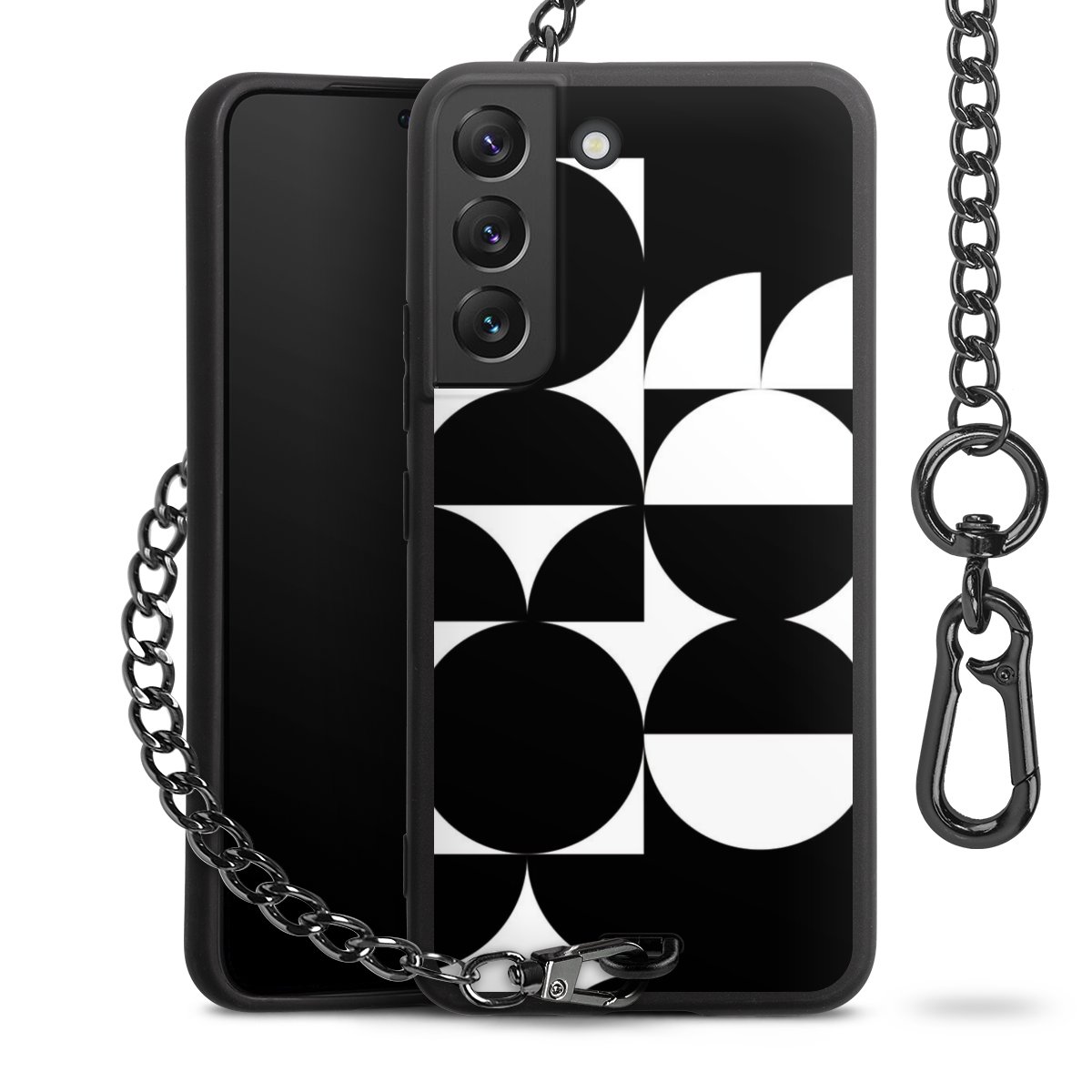 - Mattschwarze Handyhülle mit Metallkette