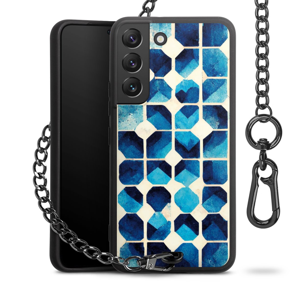 • Mattschwarze Handyhülle mit Metallkette