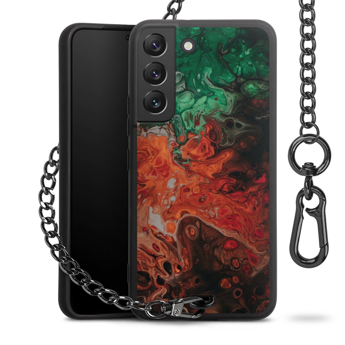 - Mattschwarze Handyhülle mit Metallkette