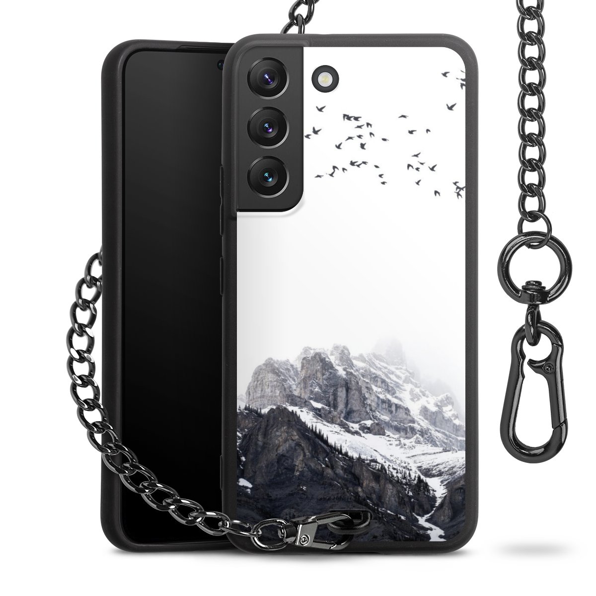 • Mattschwarze Handyhülle mit Metallkette