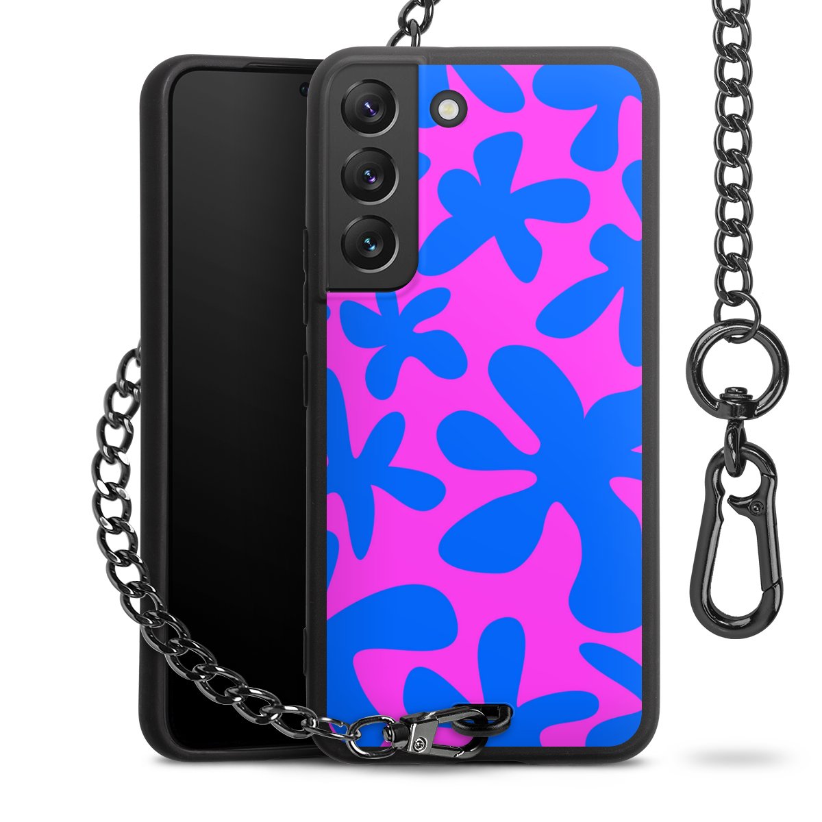 - Mattschwarze Handyhülle mit Metallkette