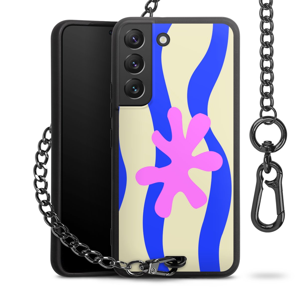 - Mattschwarze Handyhülle mit Metallkette