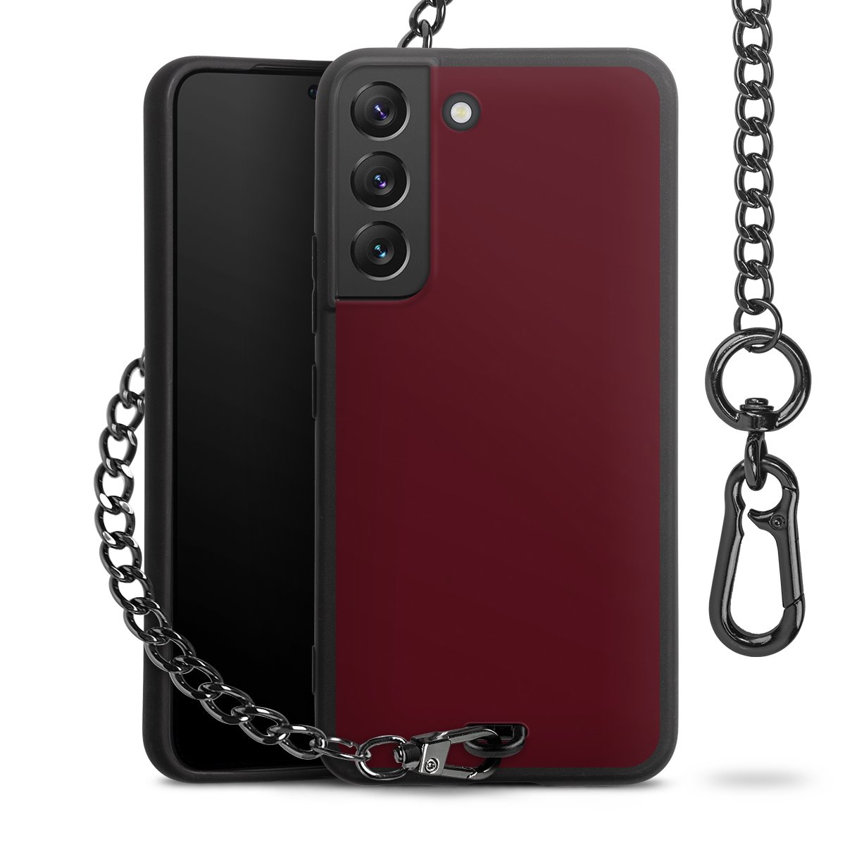 - Mattschwarze Handyhülle mit Metallkette