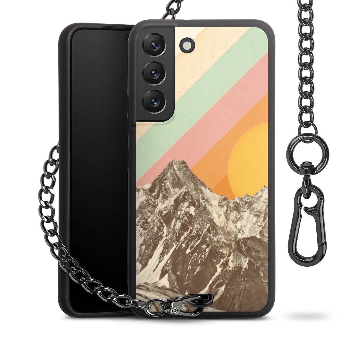 • Mattschwarze Handyhülle mit Metallkette