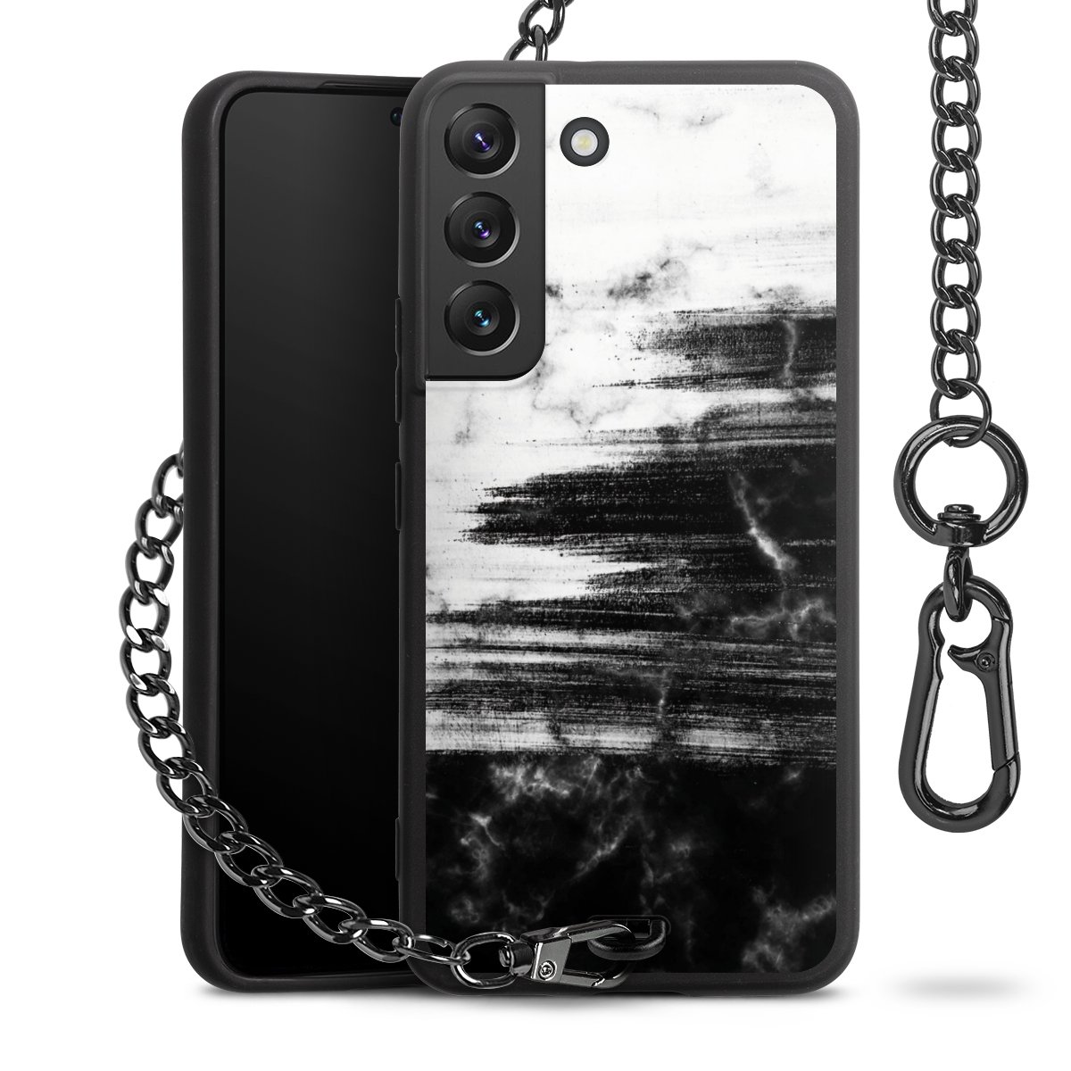 • Mattschwarze Handyhülle mit Metallkette