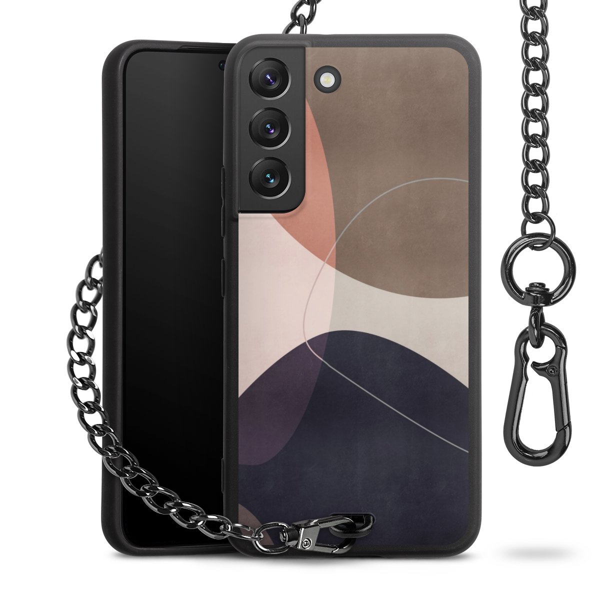 • Mattschwarze Handyhülle mit Metallkette