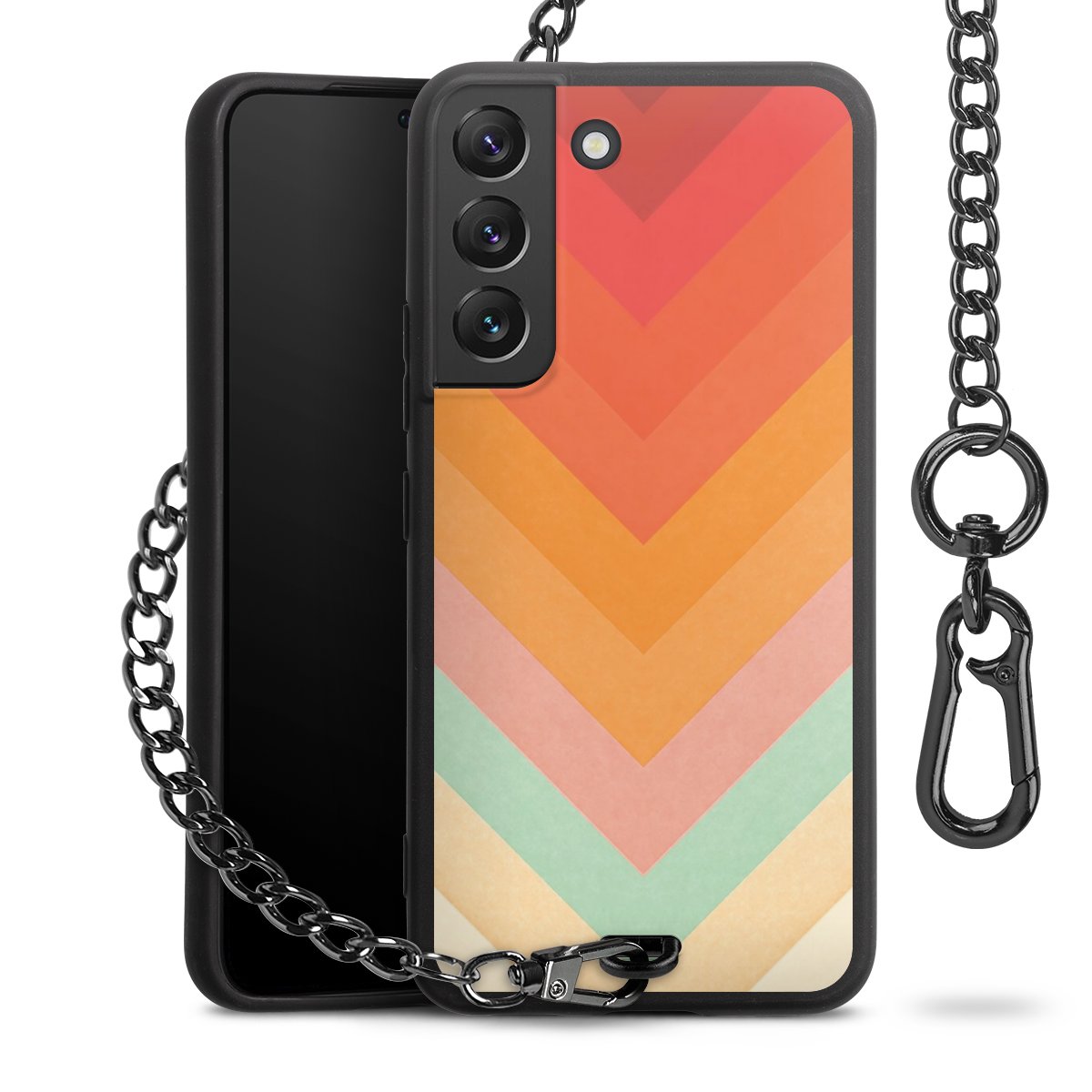 • Mattschwarze Handyhülle mit Metallkette