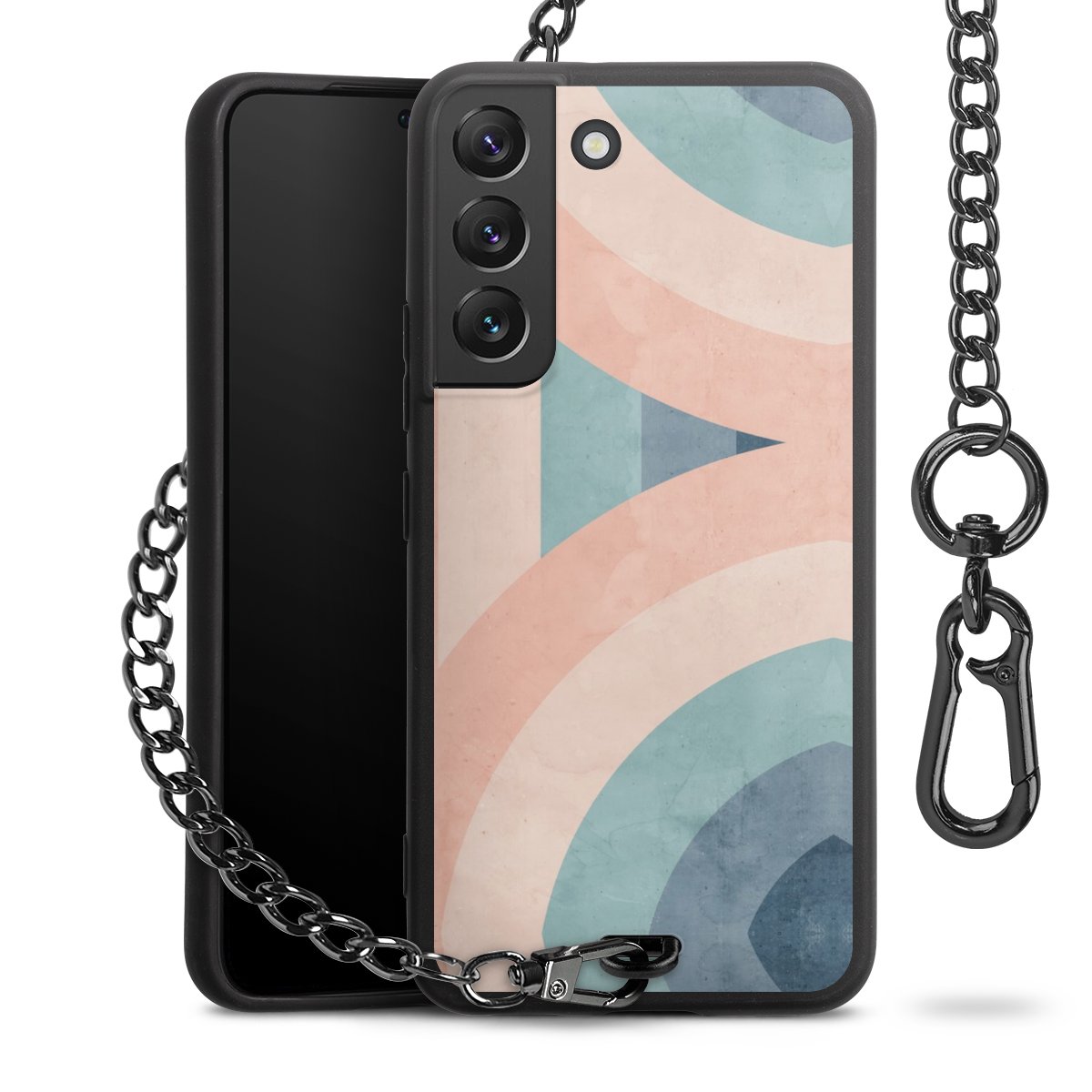 • Mattschwarze Handyhülle mit Metallkette