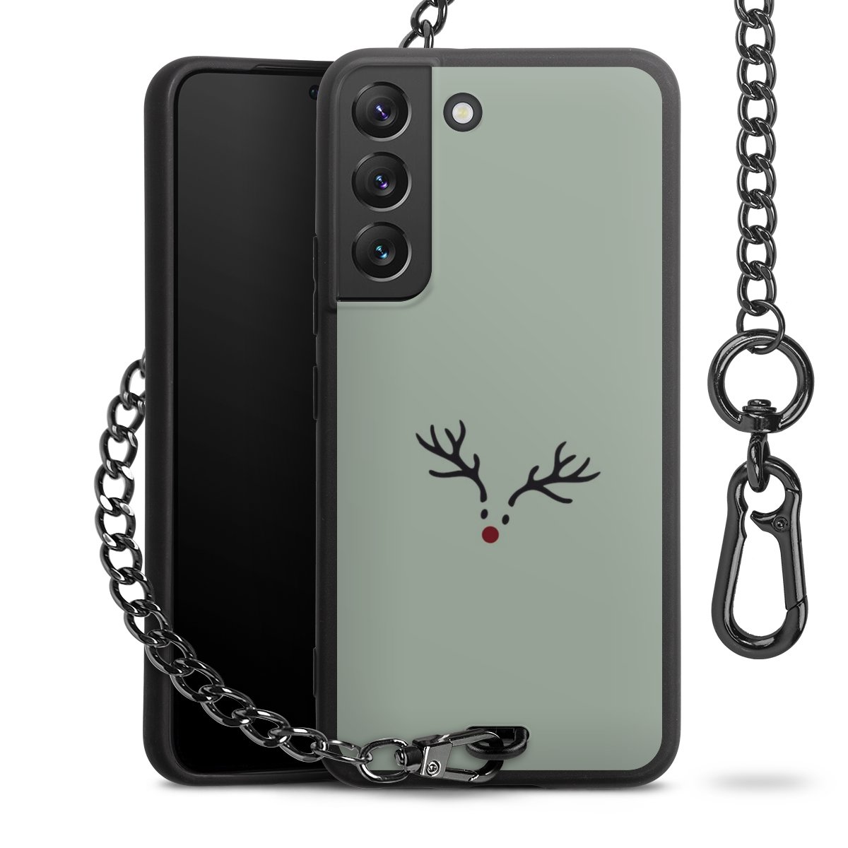 - Mattschwarze Handyhülle mit Metallkette
