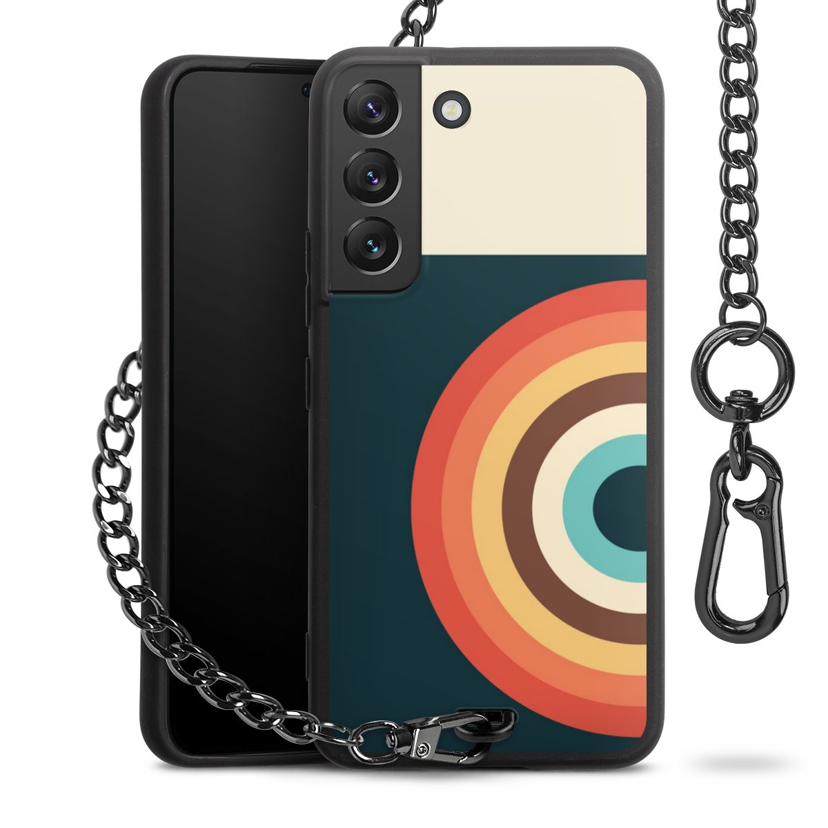 - Mattschwarze Handyhülle mit Metallkette