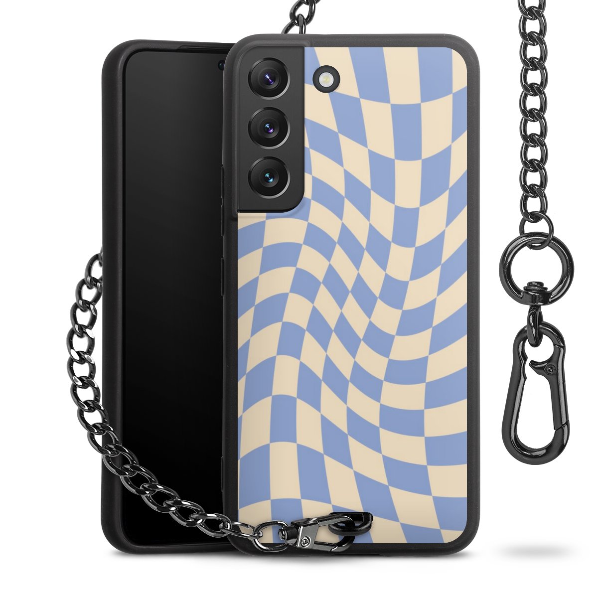 - Mattschwarze Handyhülle mit Metallkette