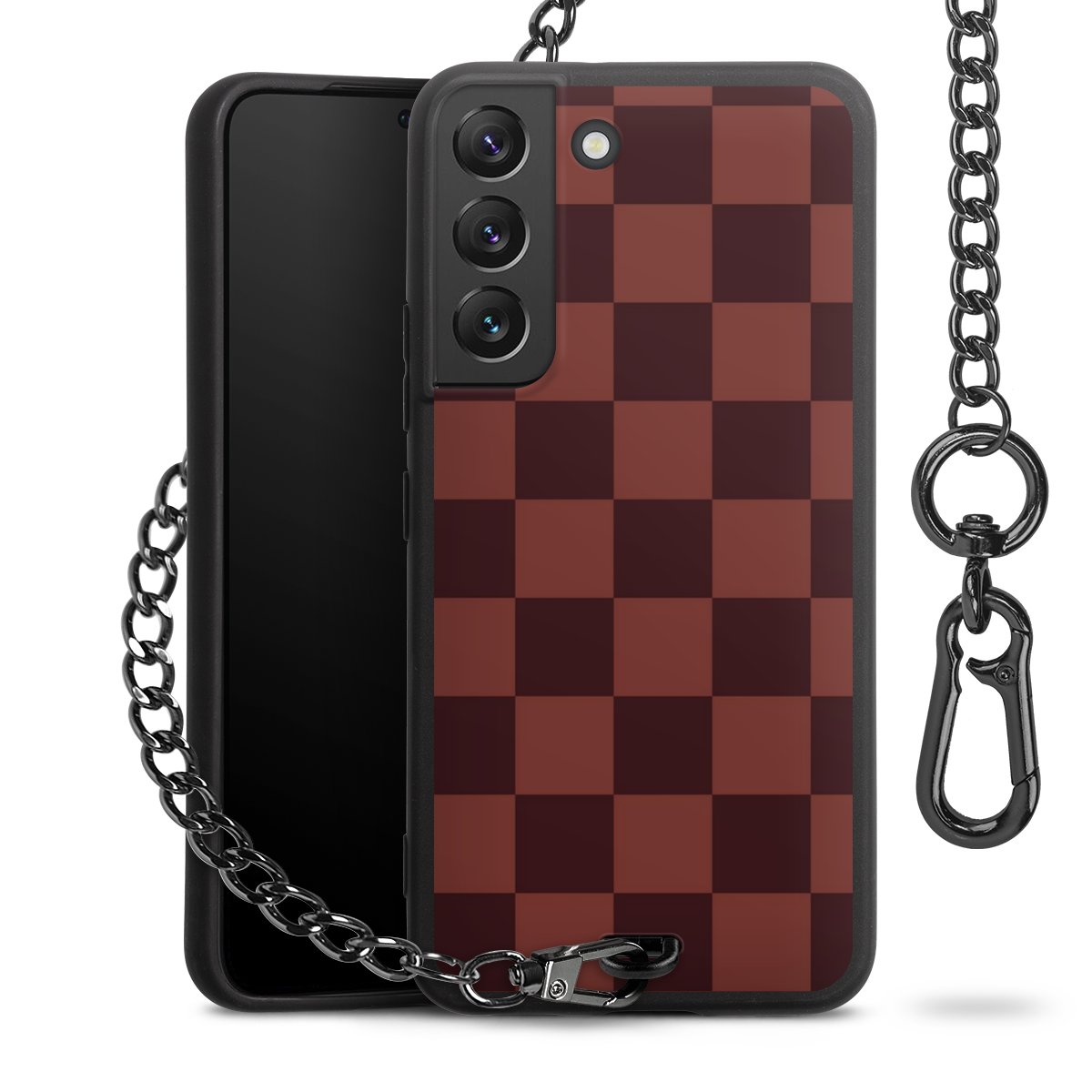 - Mattschwarze Handyhülle mit Metallkette