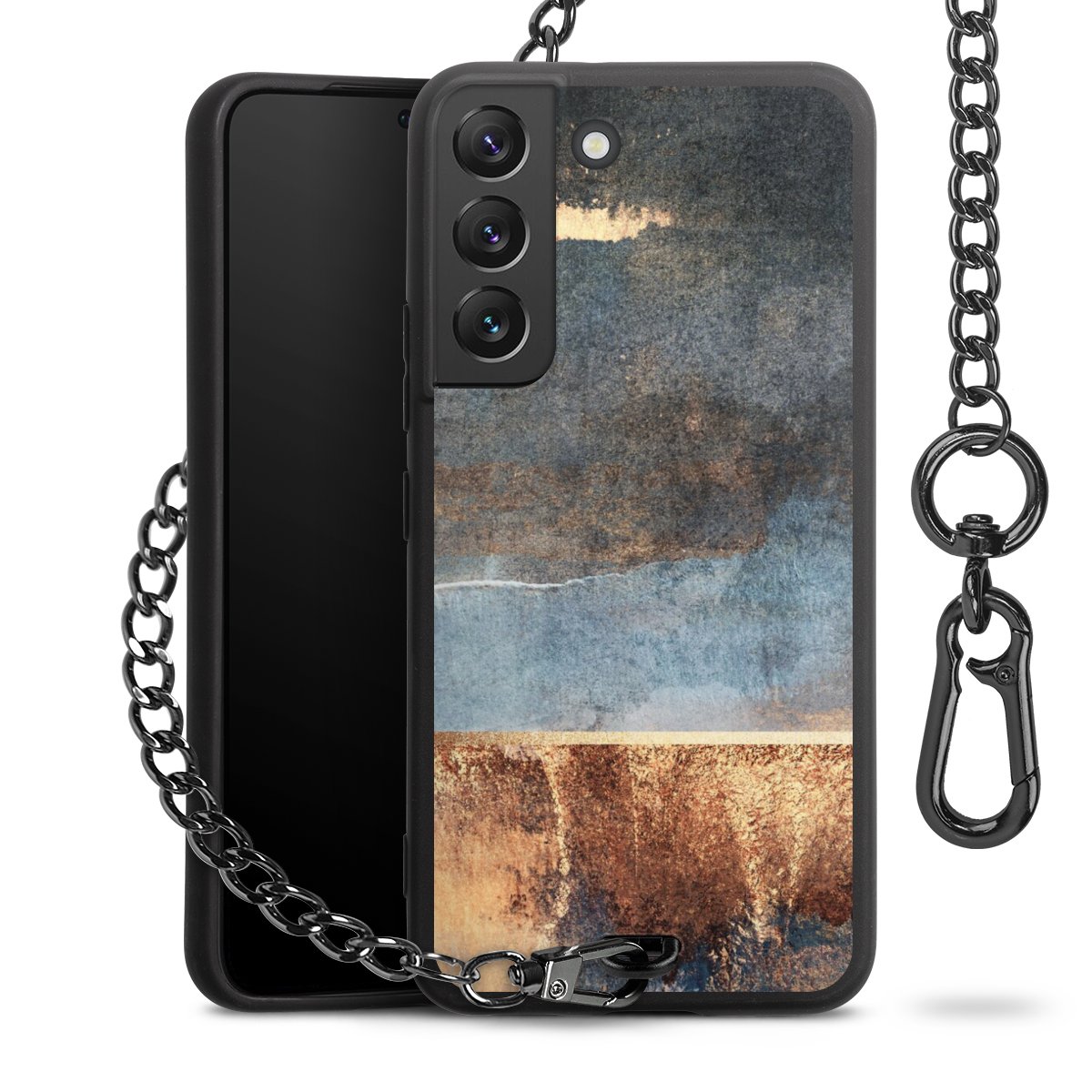 • Mattschwarze Handyhülle mit Metallkette