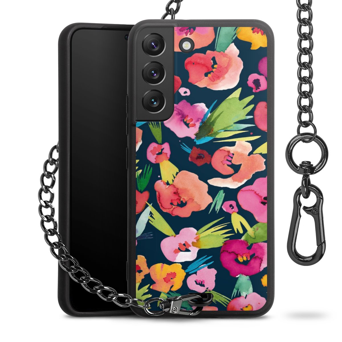 • Mattschwarze Handyhülle mit Metallkette