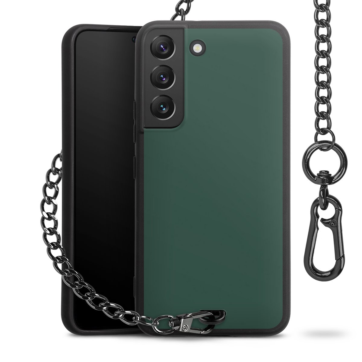 - Mattschwarze Handyhülle mit Metallkette