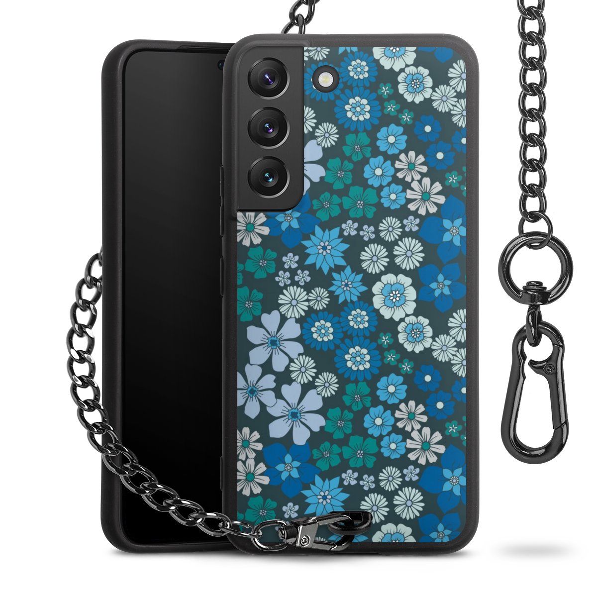 • Mattschwarze Handyhülle mit Metallkette