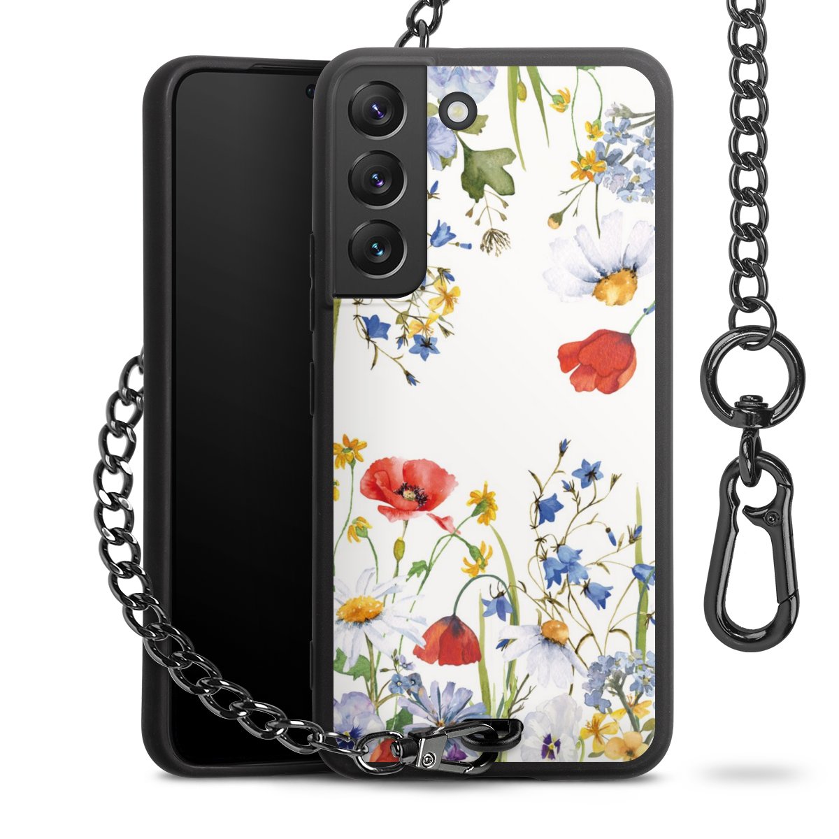 • Mattschwarze Handyhülle mit Metallkette
