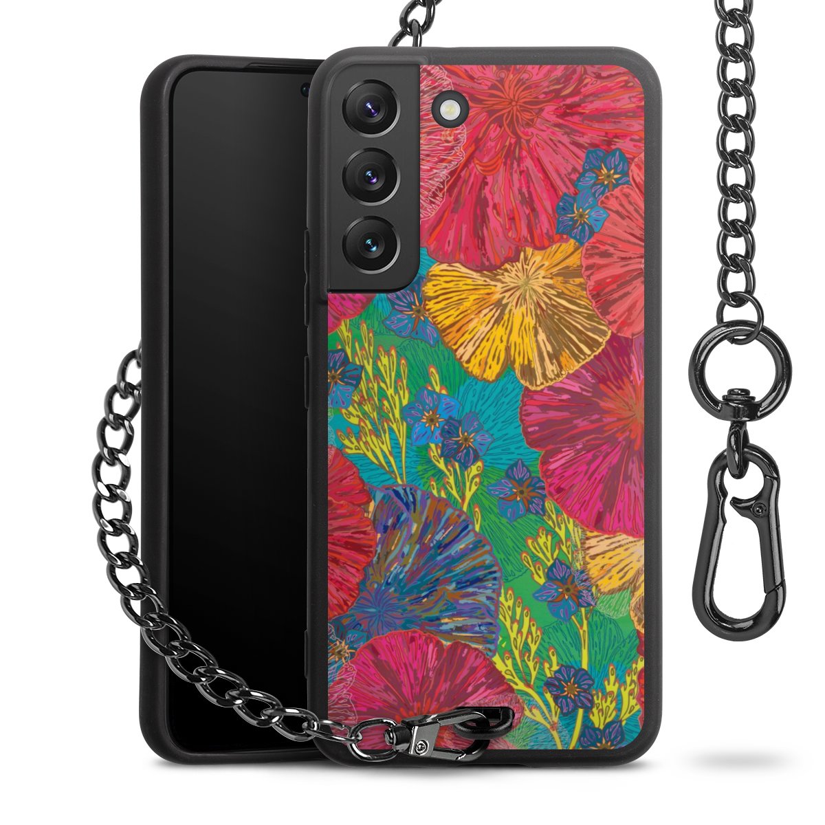 • Mattschwarze Handyhülle mit Metallkette