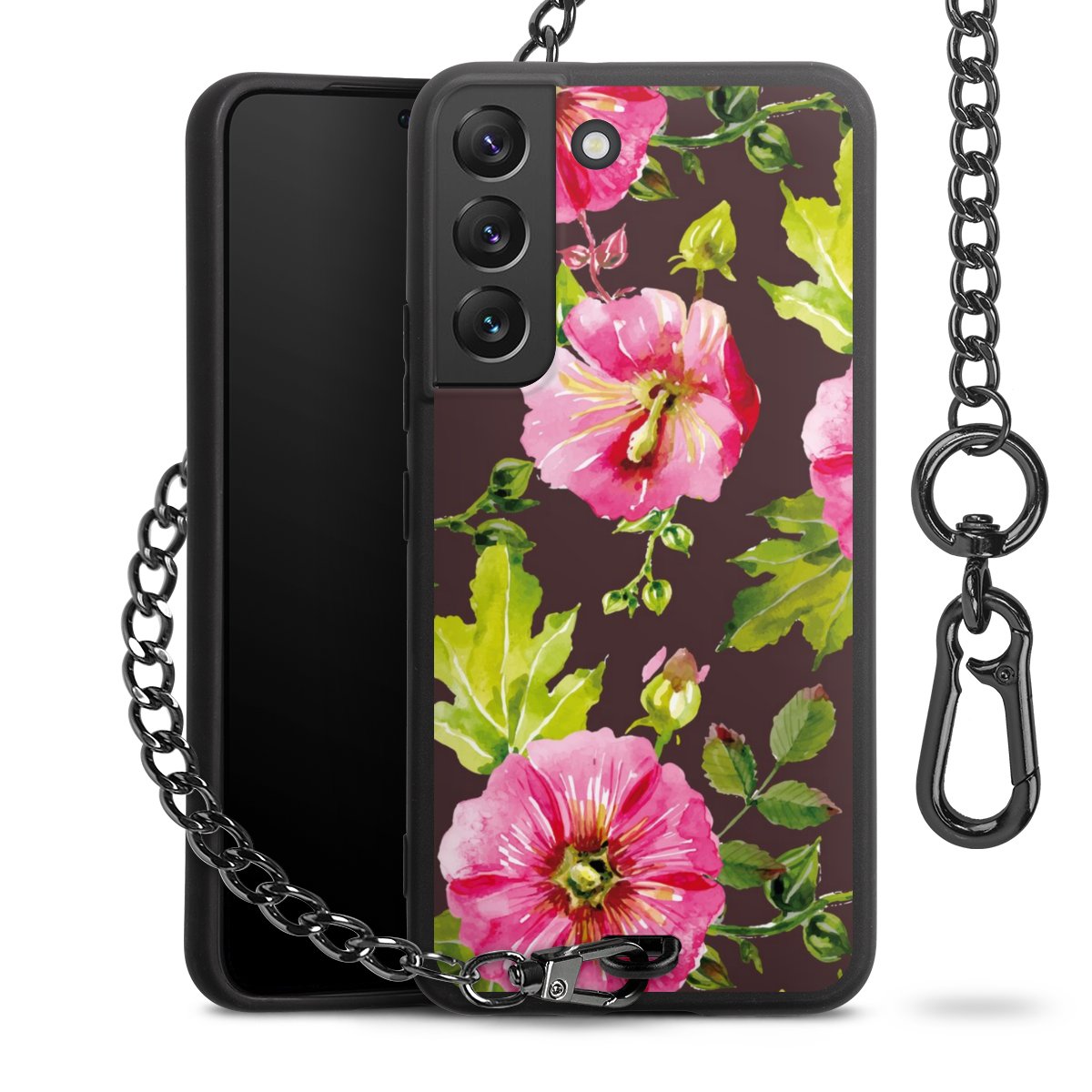 • Mattschwarze Handyhülle mit Metallkette