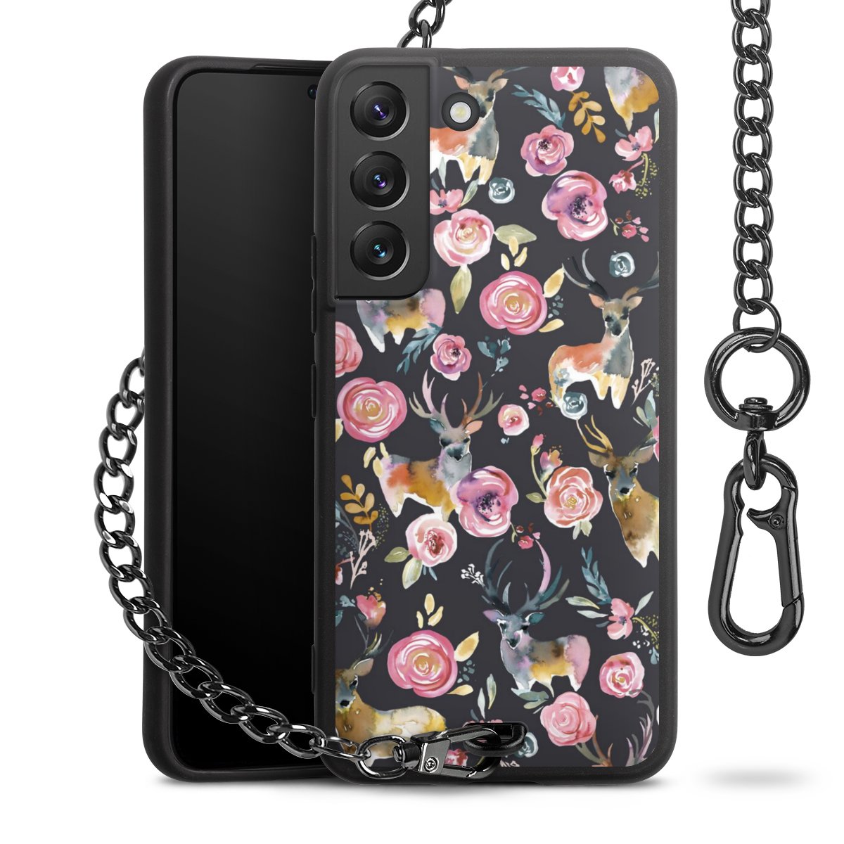 • Mattschwarze Handyhülle mit Metallkette