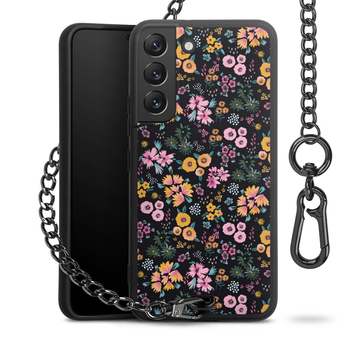 • Mattschwarze Handyhülle mit Metallkette