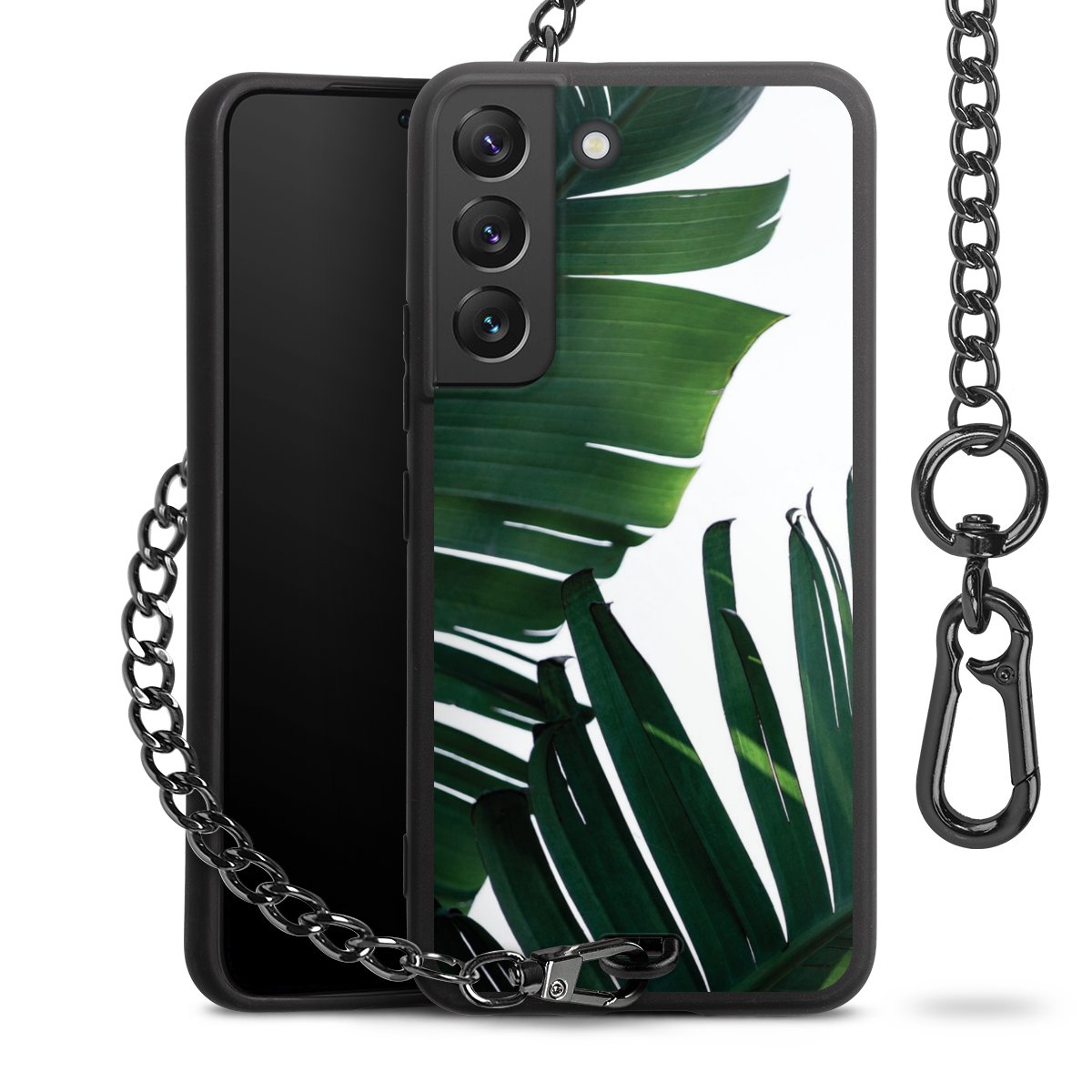• Mattschwarze Handyhülle mit Metallkette